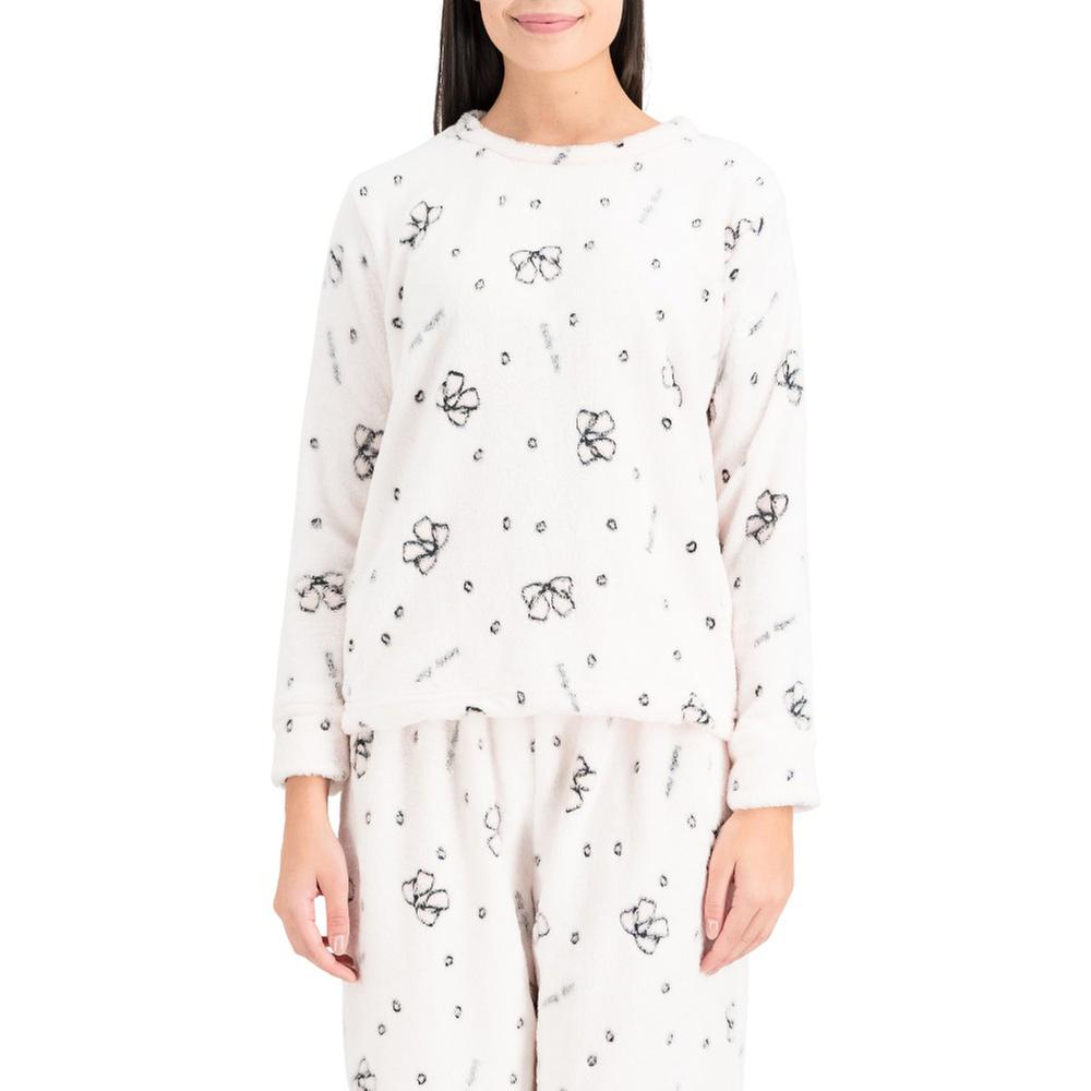 Pijama de polar suave y cálido con estampado floral. Playera de manga larga y pantalón con elástico en cintura para mayor comodidad al dormir.