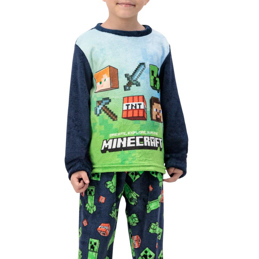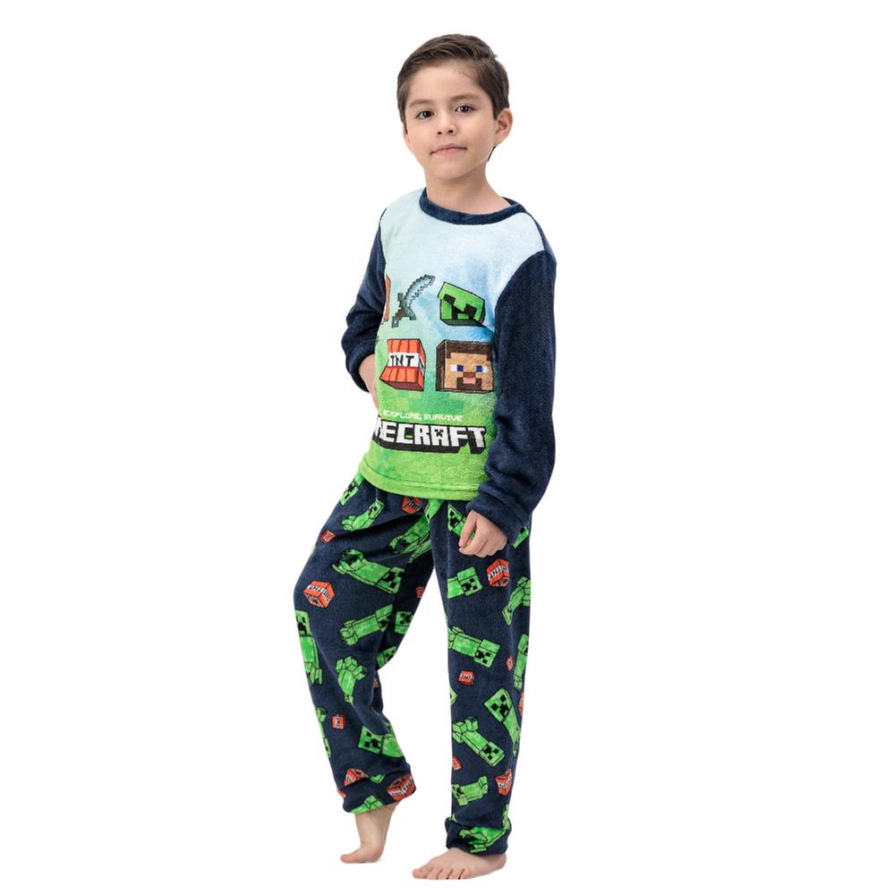 ¡Construye tus sueños con estilo! Esta pijama de Minecraft incluye sudadera de manga larga con estampado frontal y un pantalón recto con elástico. El diseño de personajes es ideal para el fanático de los videojuegos.