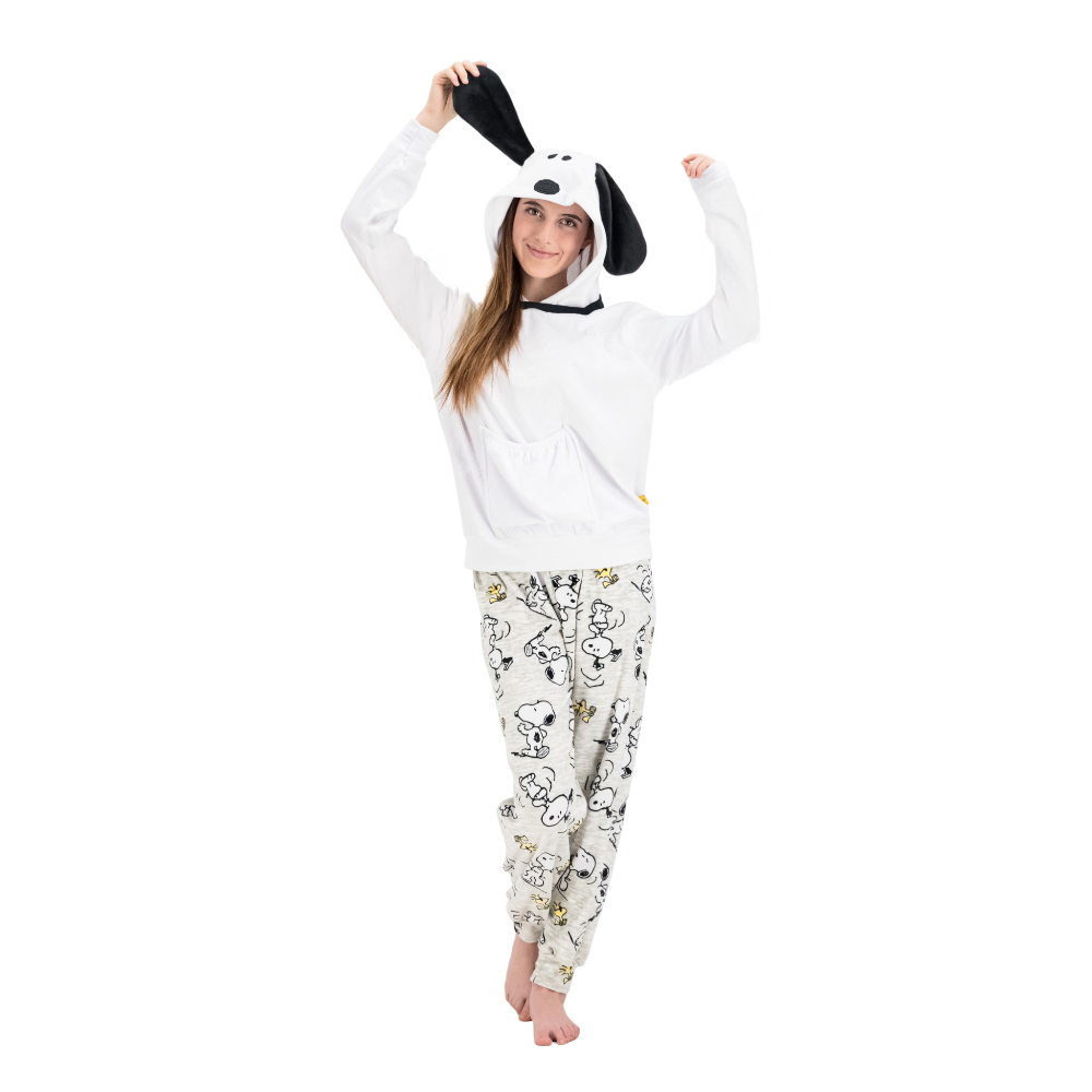 Pijama Peanuts Mujer Juvenil Snoopy Con Capucha Y Peluche