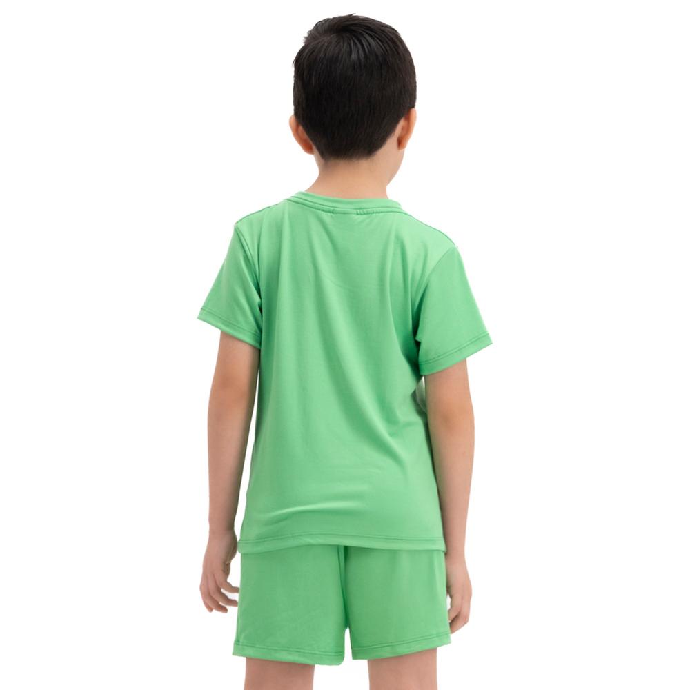 Este pijama para niño combina comodidad y estilo con una playera de cuello redondo y manga corta que presenta un estampado frontal de Creeper, mientras que el short liso con elástico en la cintura asegura un ajuste cómodo y seguro, ideal para dormir o jugar en casa.