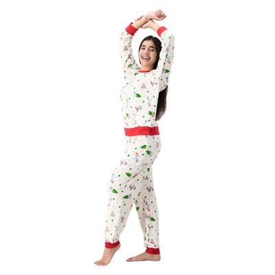 Pijama para mujer que destaca por su diseño full print moderno y vibrante, ideal para quienes buscan comodidad sin renunciar al estilo. La sudadera de cuello redondo cuenta con ajuste en puños y ruedo que asegura un calce perfecto, mientras que el pantalón con cintura elástica y ajuste en puños ofrece libertad de movimiento y confort durante todo el día. Perfecto para relajarte con un look llamativo y funcional.