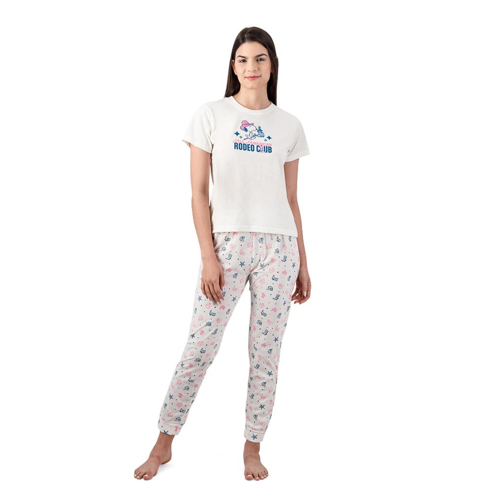 Pijama Woolworth Mujer Manga Corta Y Pantalón Full Print Snoopy Rodeo Club