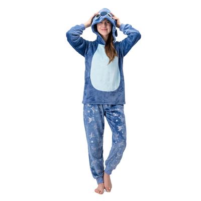Ternura y confort en polar. Esta pijama con diseño en silueta de Stitch incluye un pantalón con elástico y una sudadera con capucha de personaje para un look divertido.