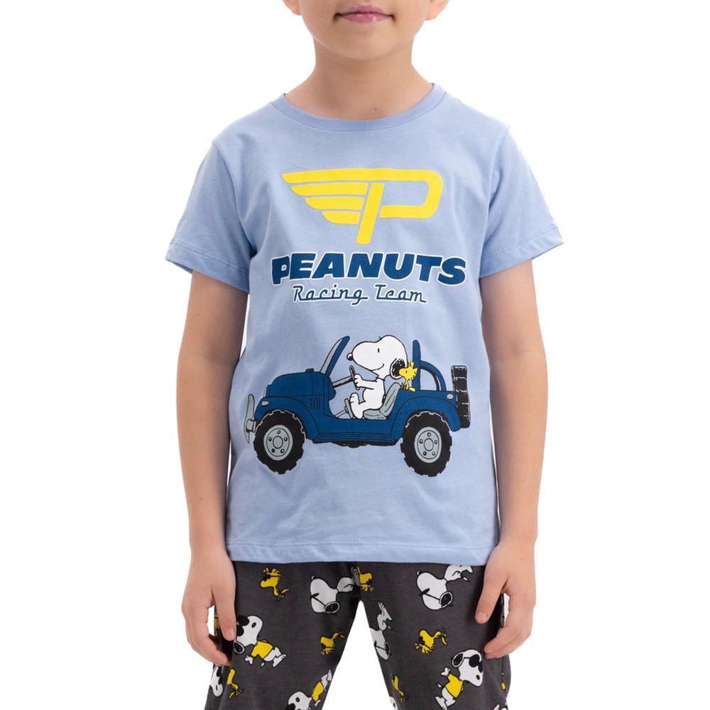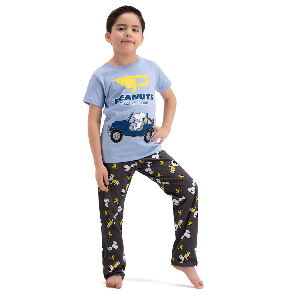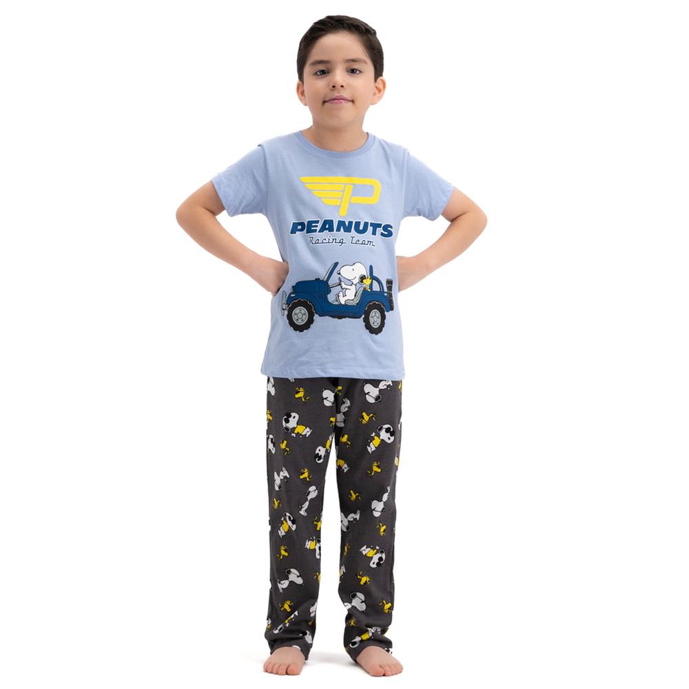 Este pijama para niño combina comodidad y diversión con un diseño inspirado en Snoopy Racing que encantará a los pequeños. La playera de cuello redondo y manga corta ofrece frescura y libertad de movimiento, mientras que el pantalón con elástico en la cintura y full print asegura un ajuste cómodo y seguro durante el descanso