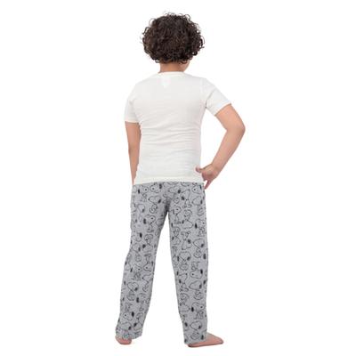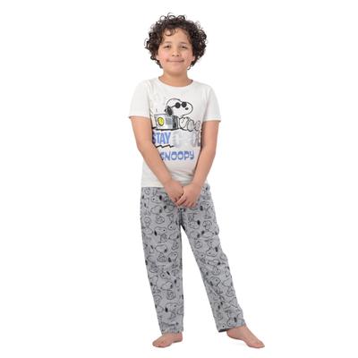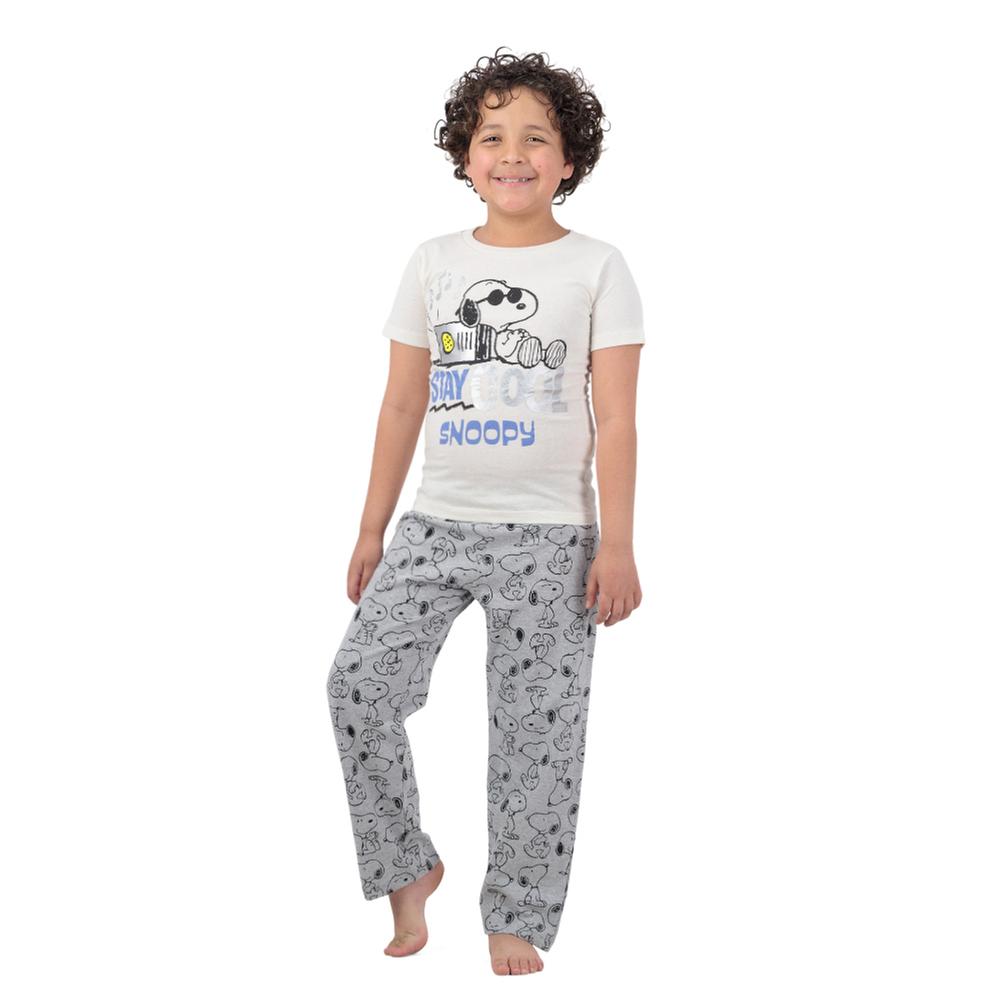 Un toque de nostalgia y ternura para la hora de acostarse. Con un divertido diseño full print de Snoopy, esta pijama de manga corta y pantalón largo asegura un ajuste perfecto gracias a su elástico en cintura, manteniendo a los pequeños frescos y con estilo.