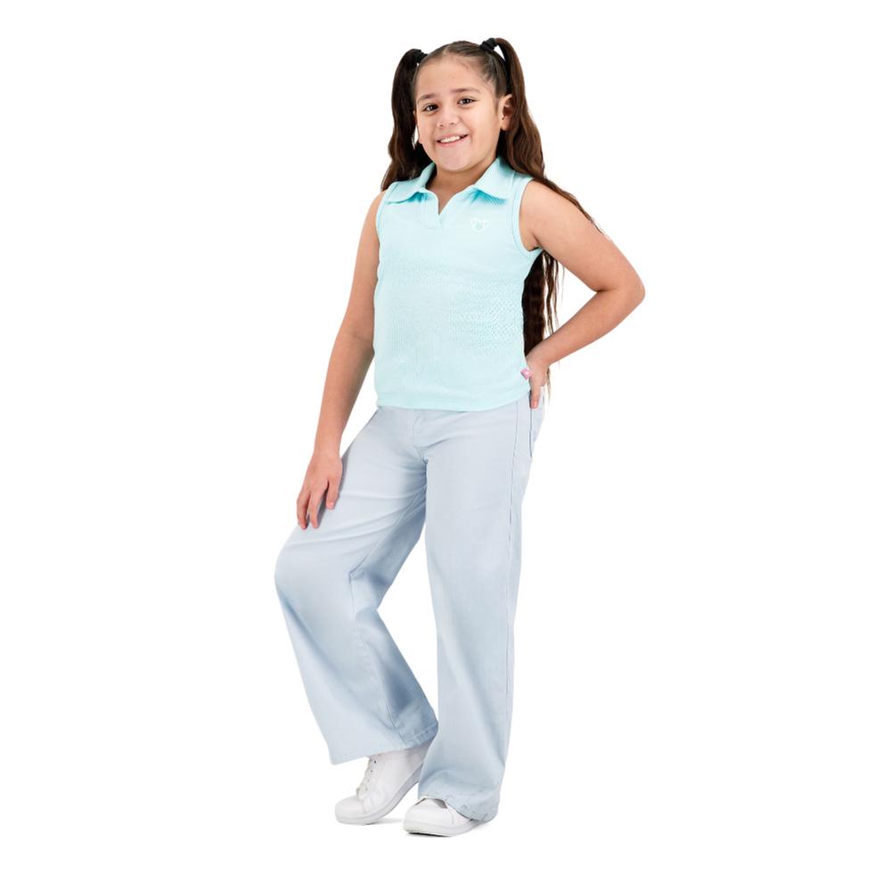 Playera Fantastic Niña Cuello Tipo Polo Diseño Liso Acanalado