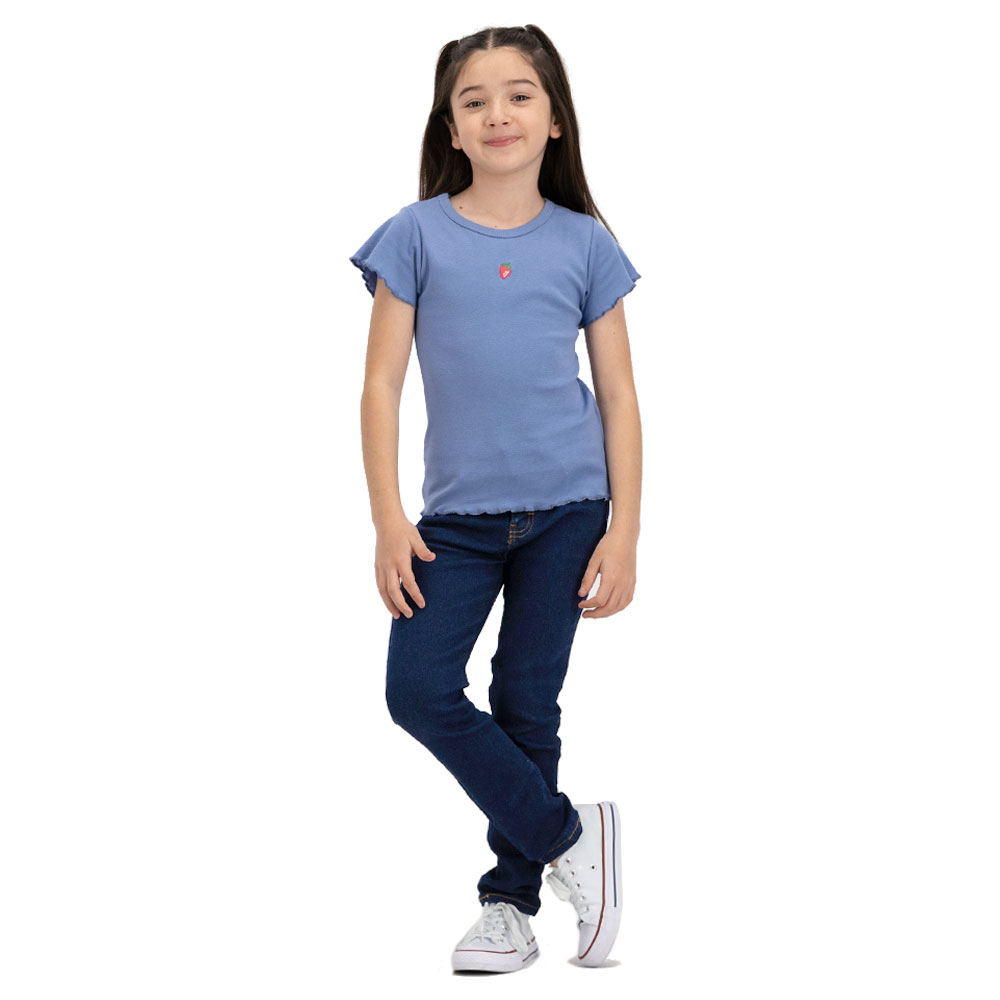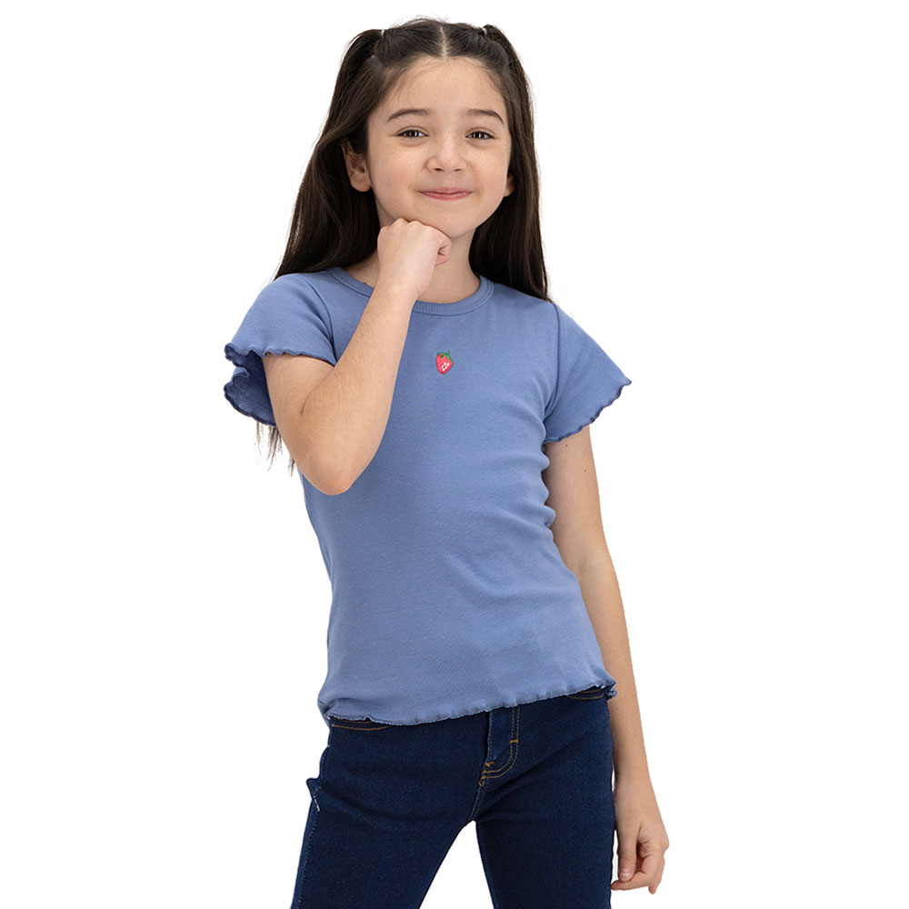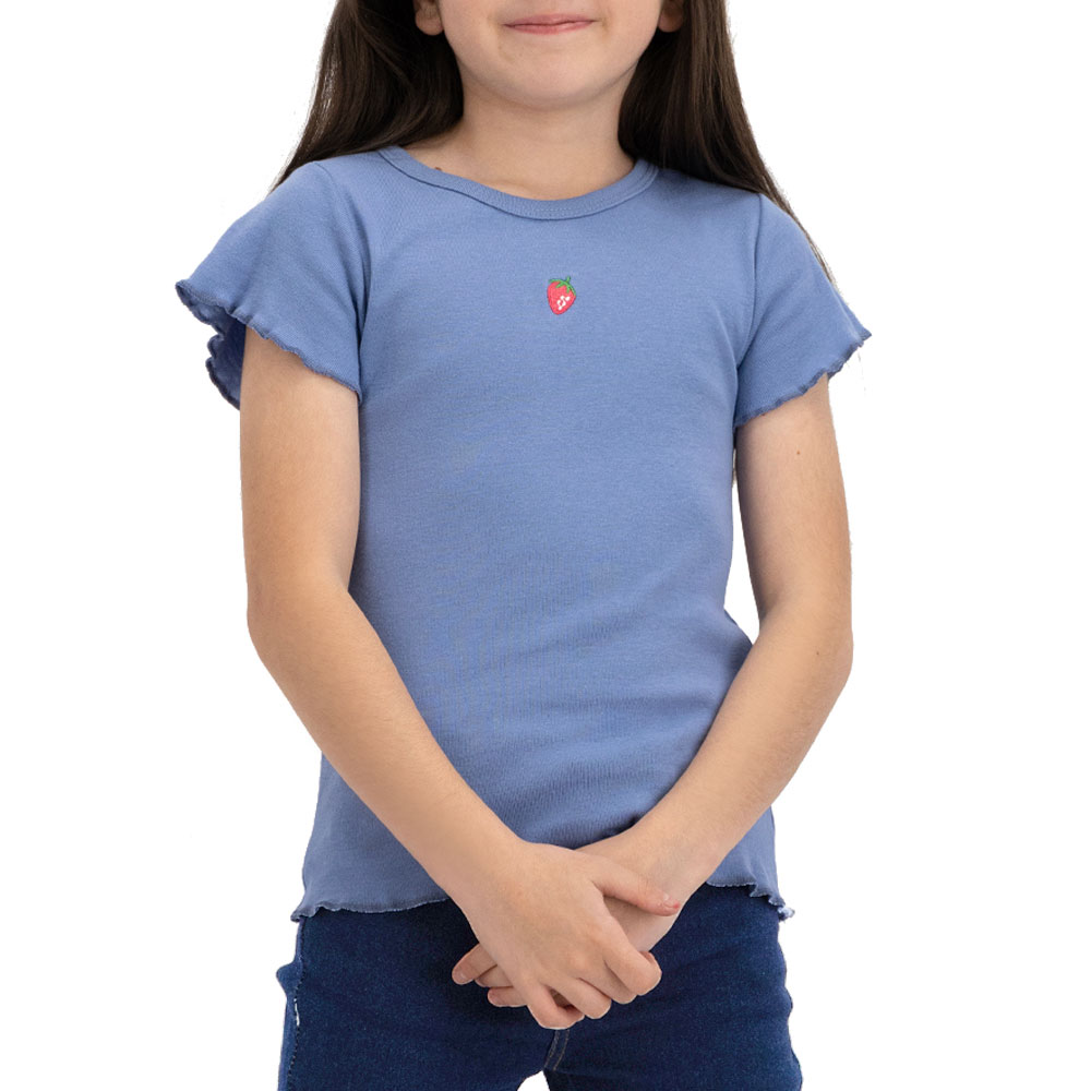 Nuestra camiseta de fresa es perfecta para las pequeñas amantes de las frutas. El diseño juguetón de la fresa en la parte delantera y los detalles en las mangas y el ruedo le dan un toque dulce y veraniego