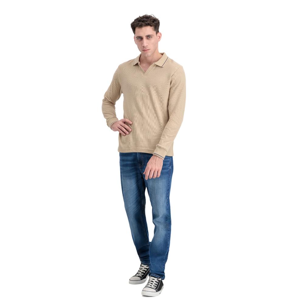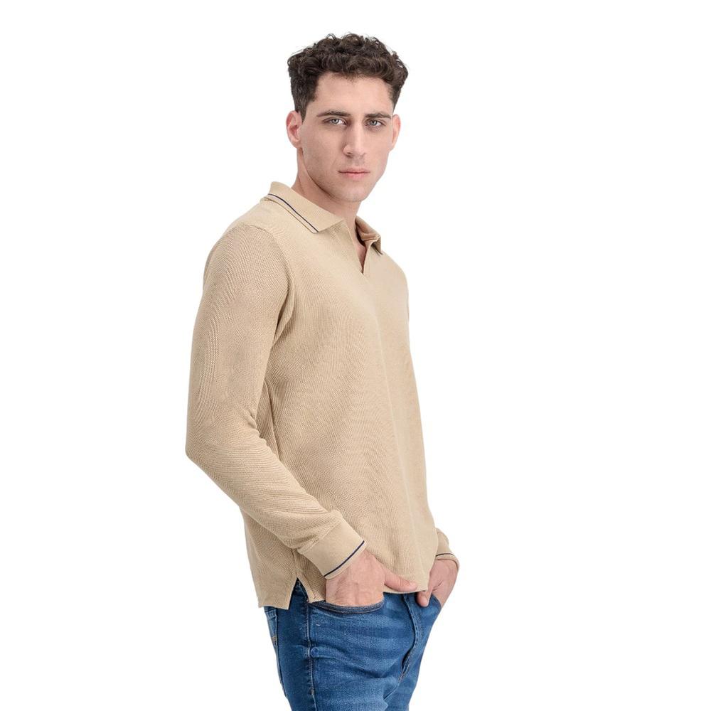 Playera Gravity Hombre Tipo Polo Con Ribetes Beige