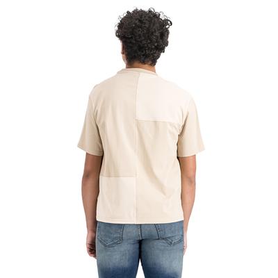 Una playera moderna con bloques de textura que aportan profundidad y estilo. Su diseño beige permite combinarla fácilmente con cualquier outfit.