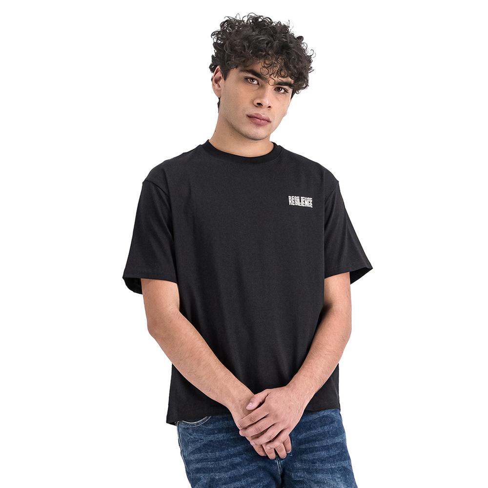 Con un diseño minimalista al frente y un mensaje destacado en la espalda, esta playera complementa cualquier look urbano con personalidad y estilo.