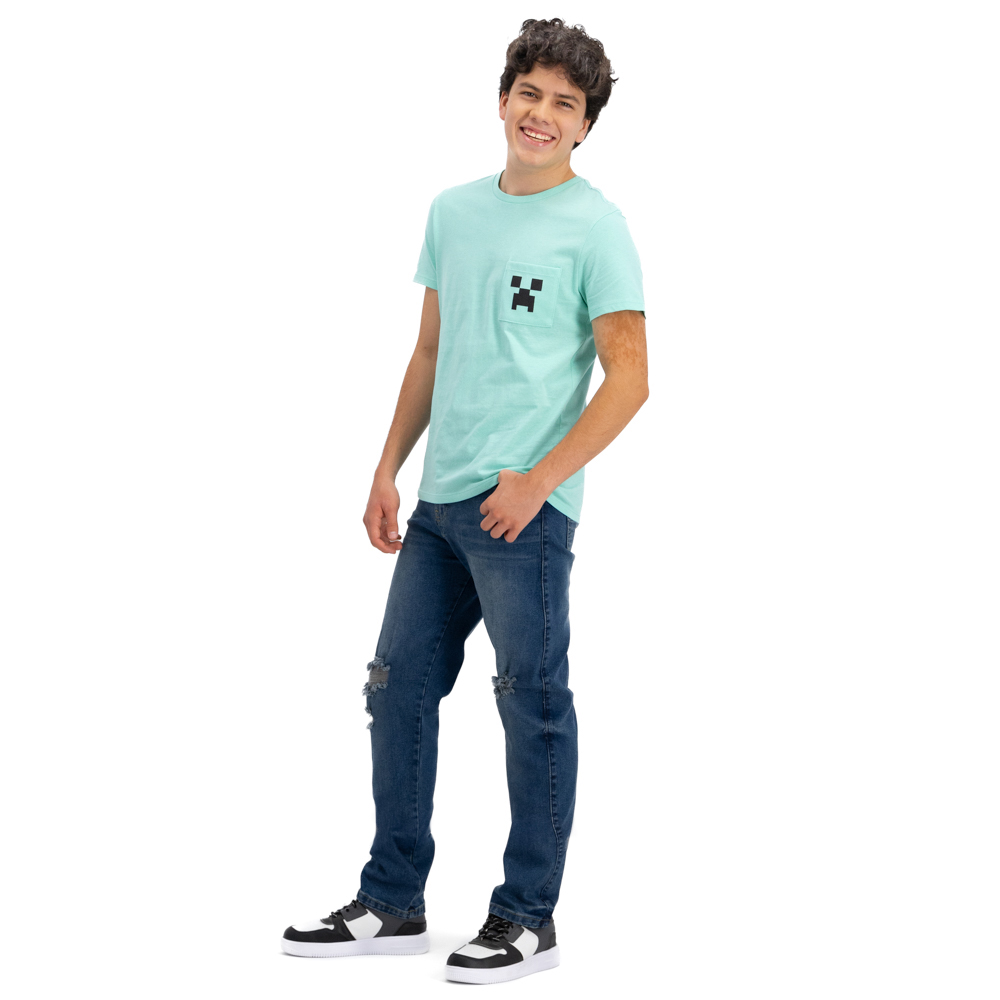 Playera Minecraft Hombre Juvenil Bolsa En Pecho