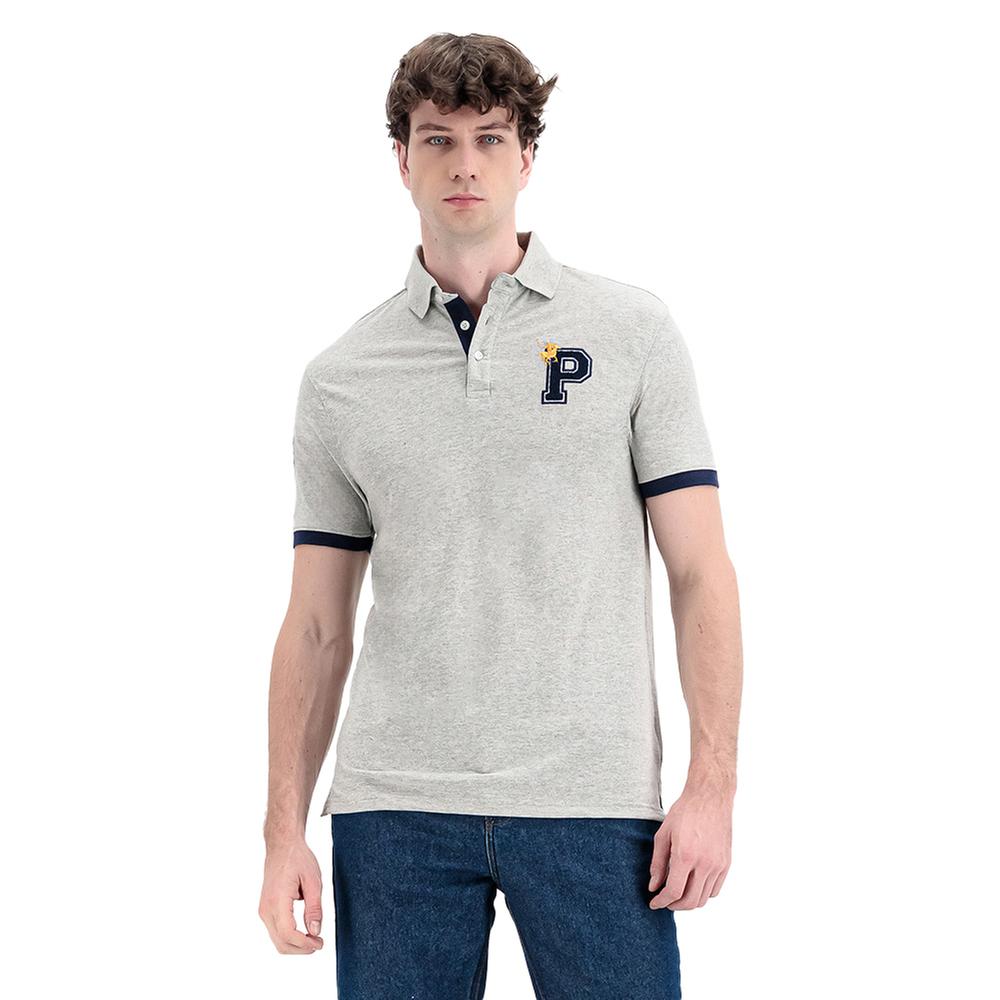 Playera Polo Star Club Hombre Polo Bordado Frontal Con Detalle Gris
