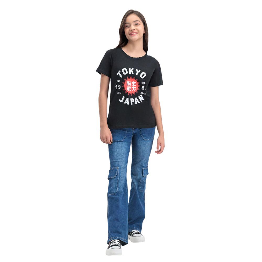 Playera urbana con estampado de inspiración japonesa, ligera y versátil. Su corte clásico y manga corta la hacen ideal para outfits casuales.