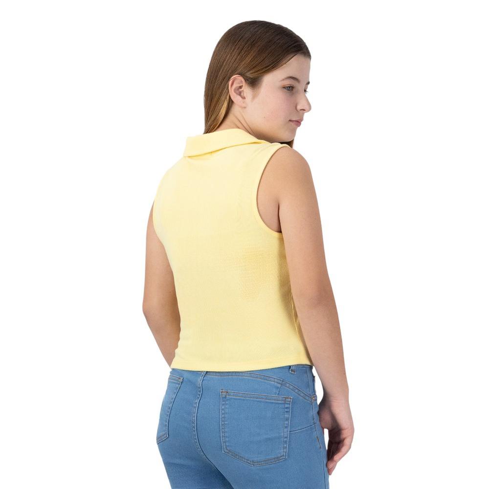 Dinamismo y textura en una sola prenda. playera de diseño acanalado sin mangas con un moderno cuello tipo polo. su escote en v con botones le da un toque atlético y sofisticado.