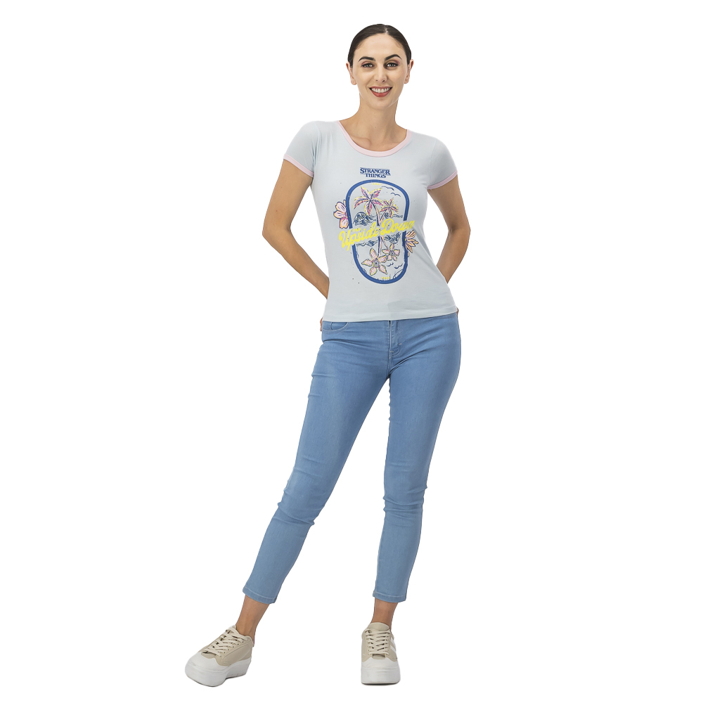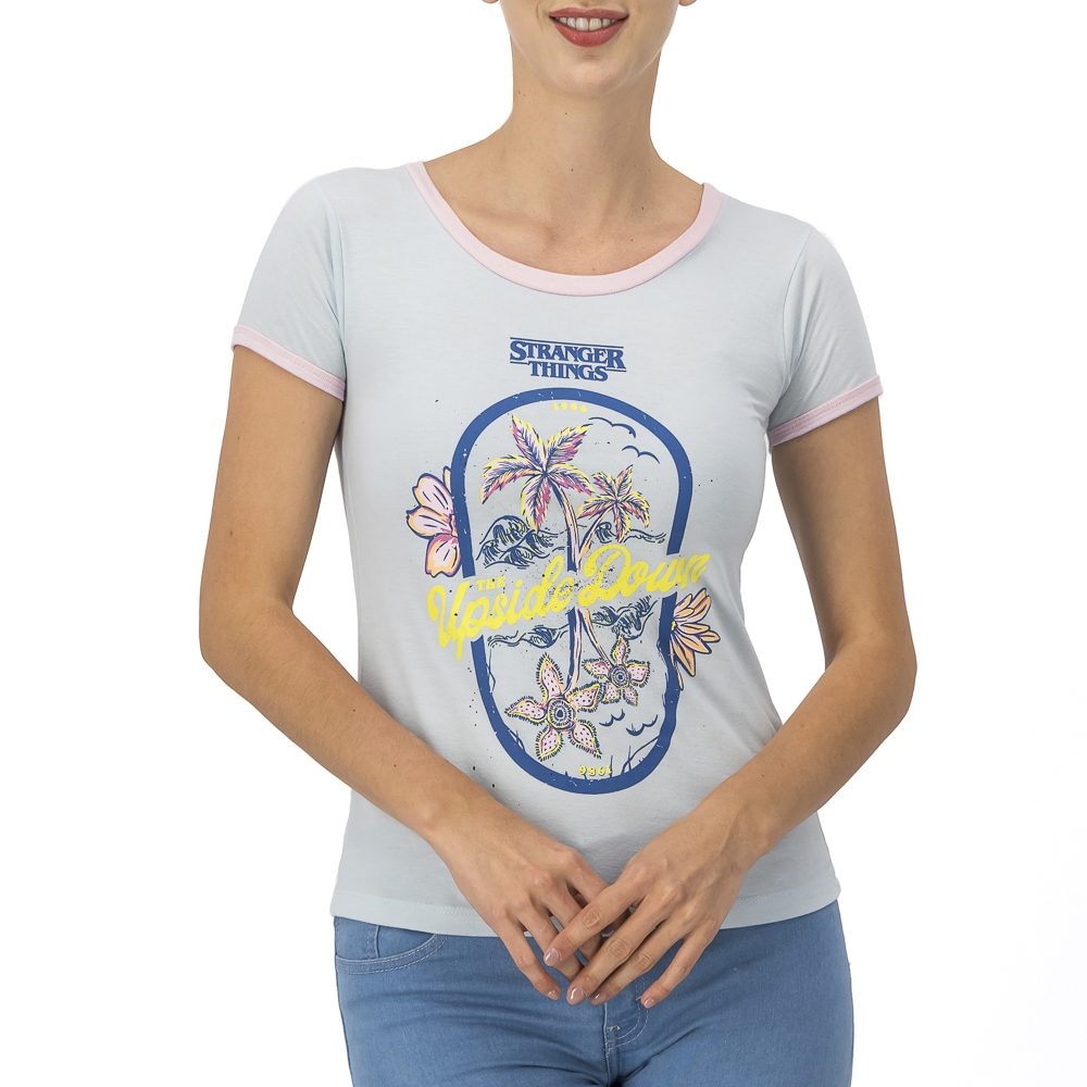• Playera Stranger Things Mujer Con Estampado Y Leyenda The Upside Down