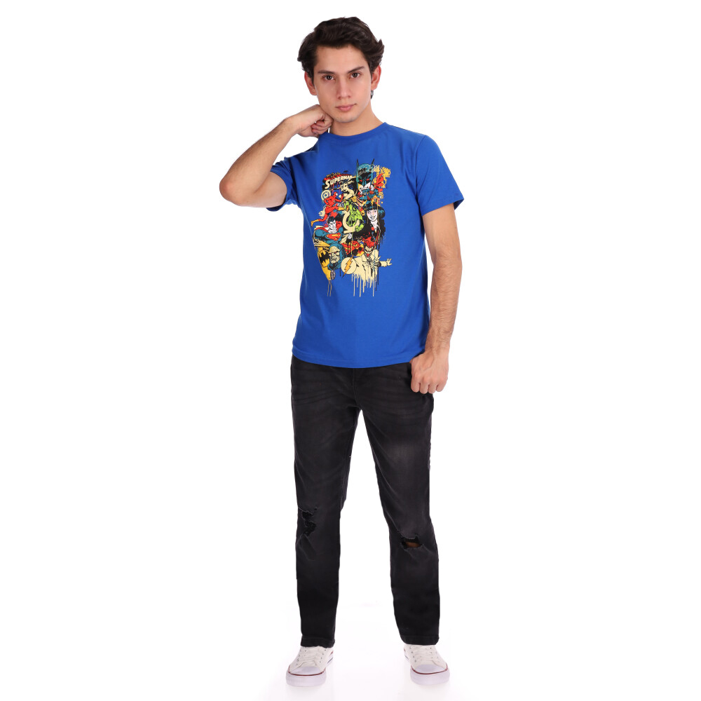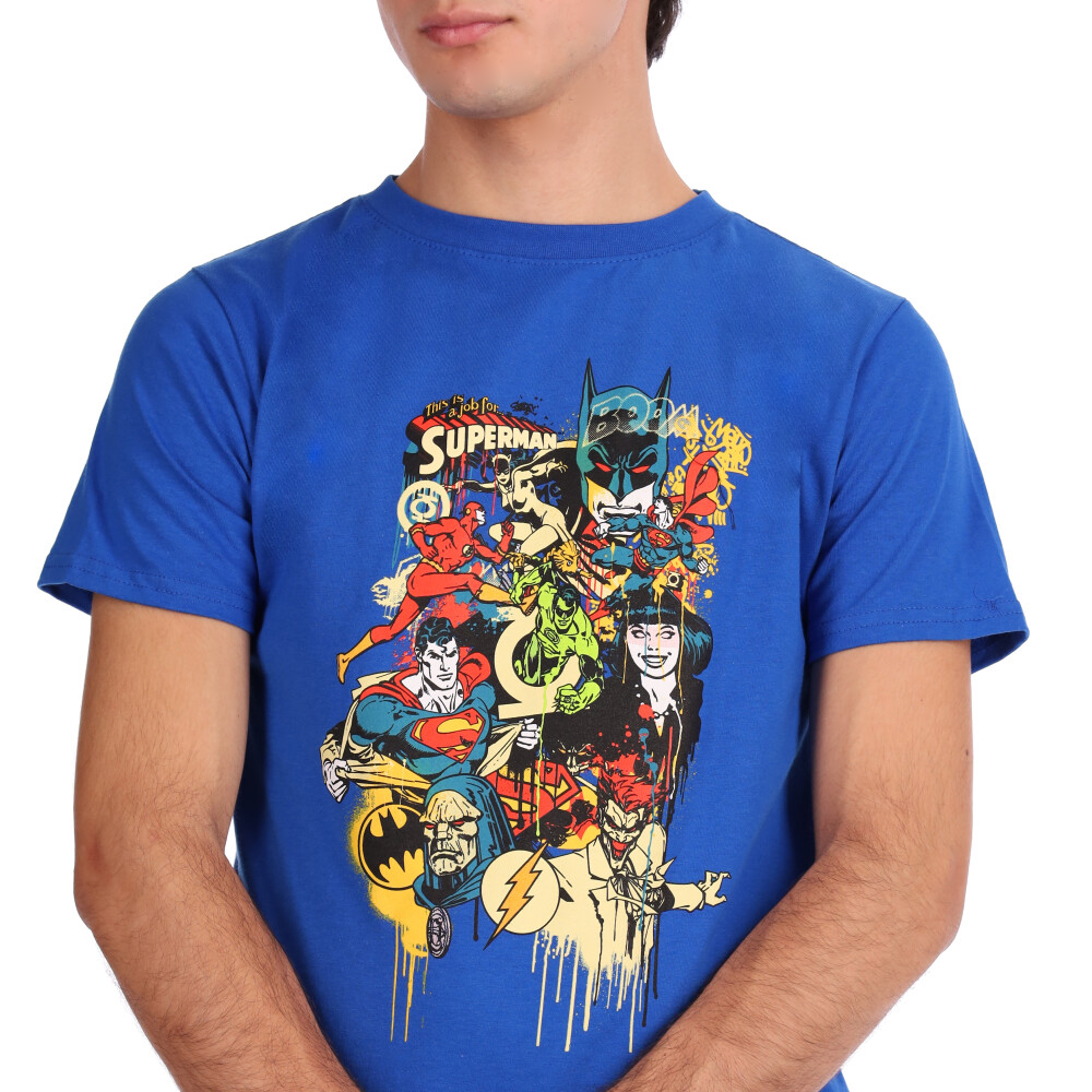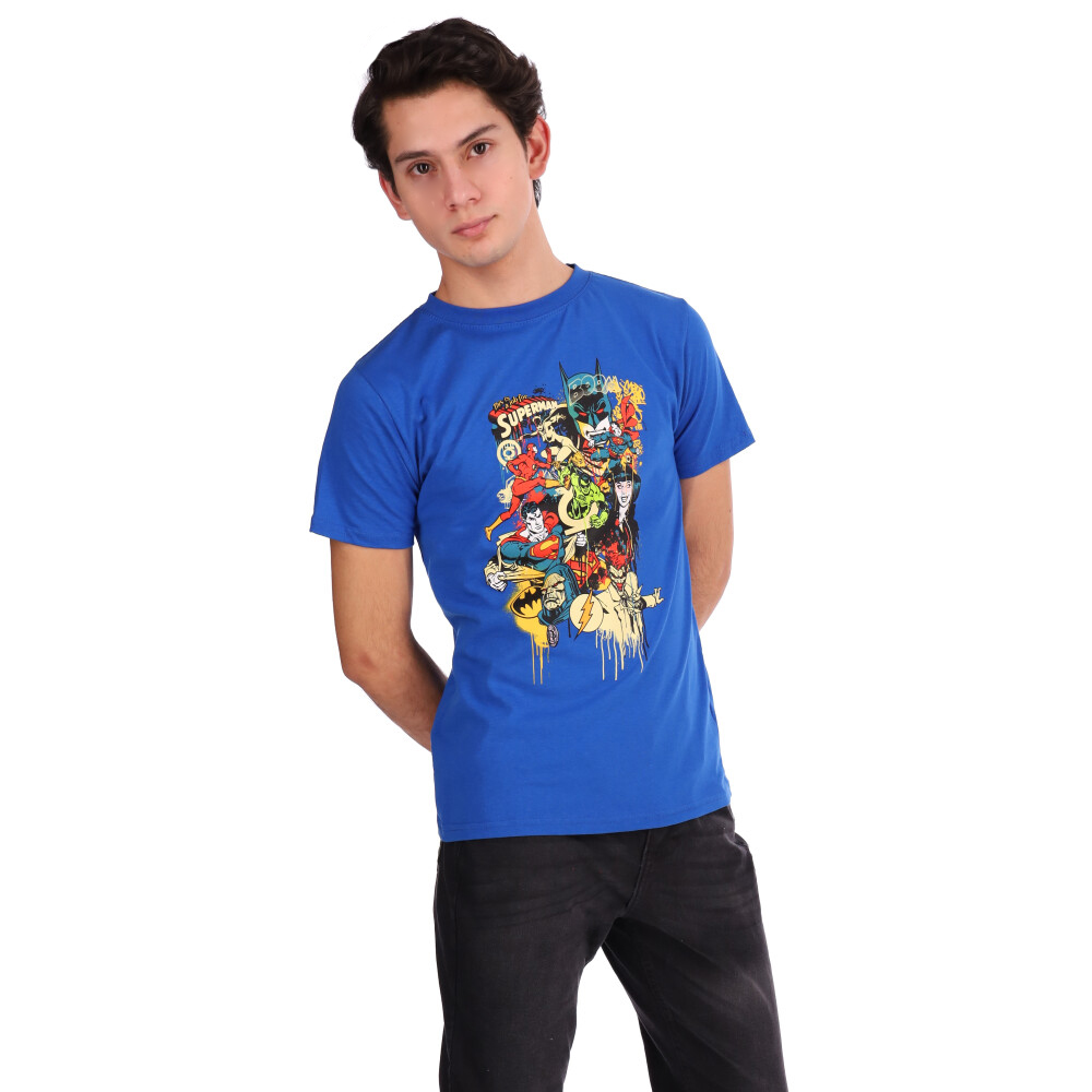 • Playera Warner Hombre Juvenil Estampado De Heroes Y Villanos De Dc