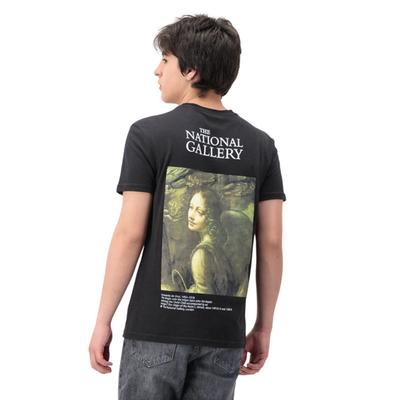 Playera de manga corta con cuello redondo. Un toque artístico con un estampado en la espalda de "La Virgen De Las Rocas". Ideal para un look único y moderno.