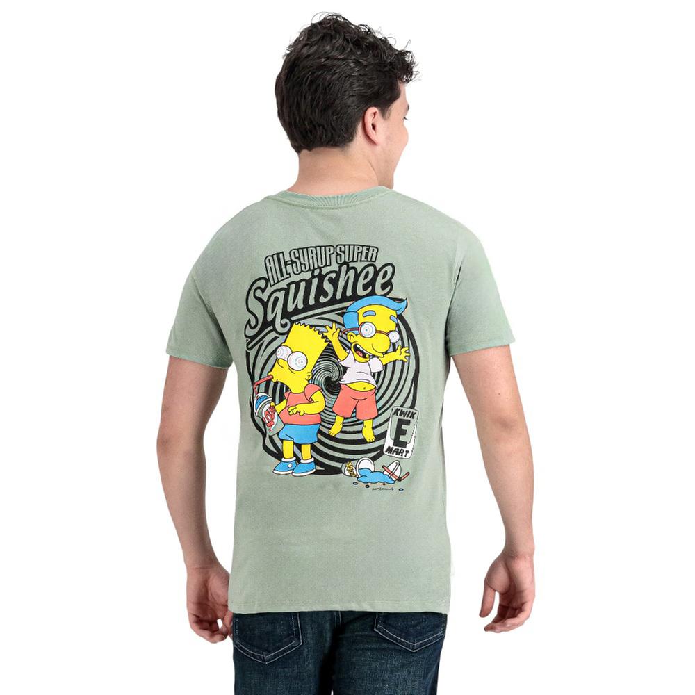 Playera de manga corta con diseño de Bart y Milhouse en frente y espalda. Estilo casual y divertido para el día a día.