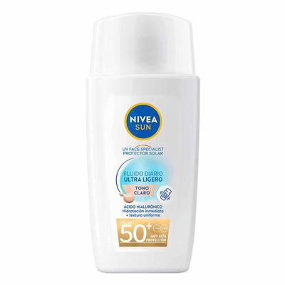 Dale a tu piel la protección y el cuidado diario que necesitan con el Protector Solar con Color Nivea Sun que brinda una protección inmediata contra los rayos UVA/UVB y contra los efectos de la luz visible de alta energía, como el envejecimiento prematuro de la piel. Su fórmula está enriquecida con Ácido Hialurónico que brinda hidratación inmediata y una sensación de frescura en la piel. Además, contiene Licochalcona A, un poderoso antioxidante que ayuda a activar el mecanismo natural de auto-defensa de la piel y protege las células del estrés oxidativo. El fluido ultra ligero con pigmentos de color y cobertura de larga duración, cubre efectivamente las imperfecciones del rostro, dejando una textura uniforme y natural en la piel. Proporciona un efecto matificante y no deja sensación grasosa ni pegajosa. Ideal para uso en capas y re-aplicación sin efecto borrador.