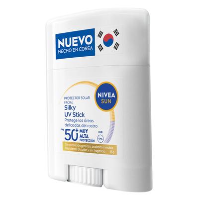Protector Solar Facial En Barra Nivea Sun Silky UV Stick FPS 50+ 15 G