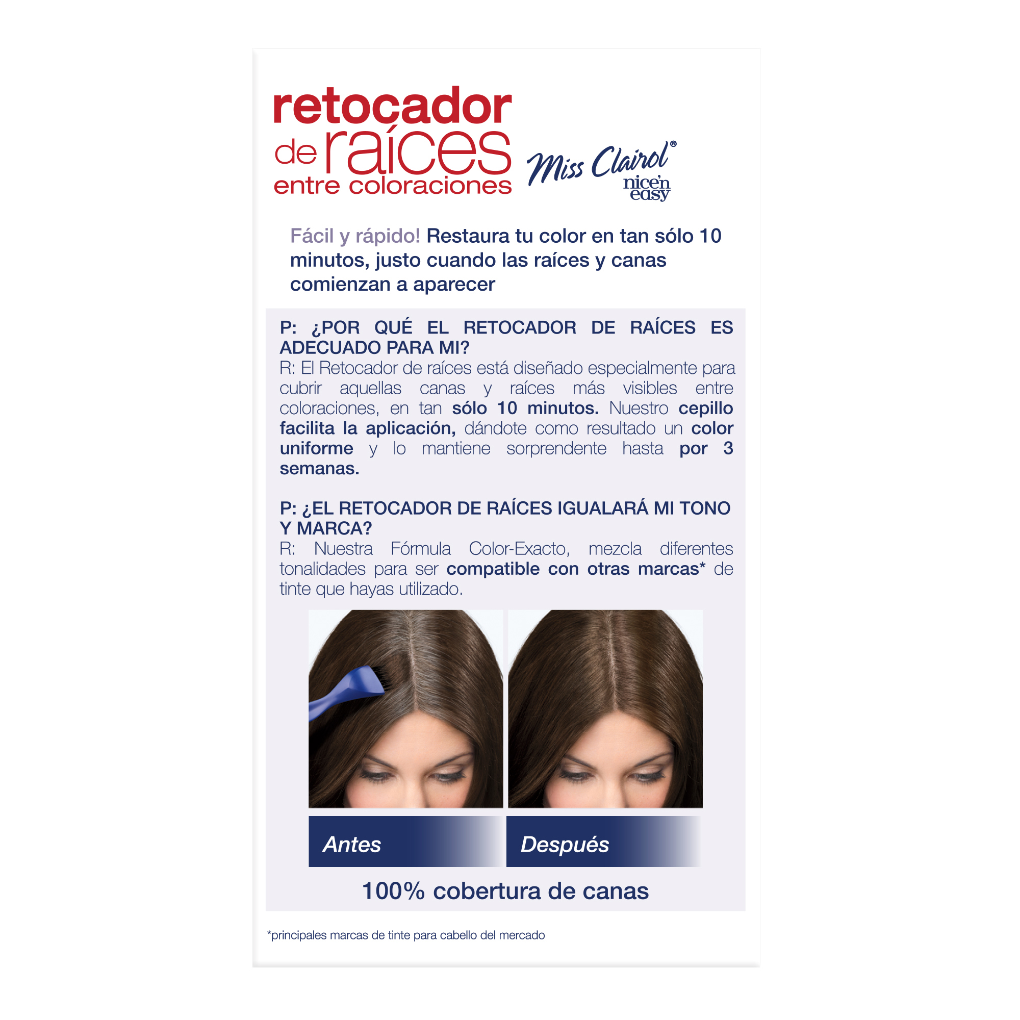 Recobra el color de tu cabello con el Retocador de Raíz Niss Clairol. Tinte retocador con fórmula color-exacto, te ayudará a unificar el tono con el del resto del cabello, es completamente compatible con otras marcas de tinte. Cubre el 100 % de las canas de una forma rápida en sencilla, tan solo te tomará 10 minutos