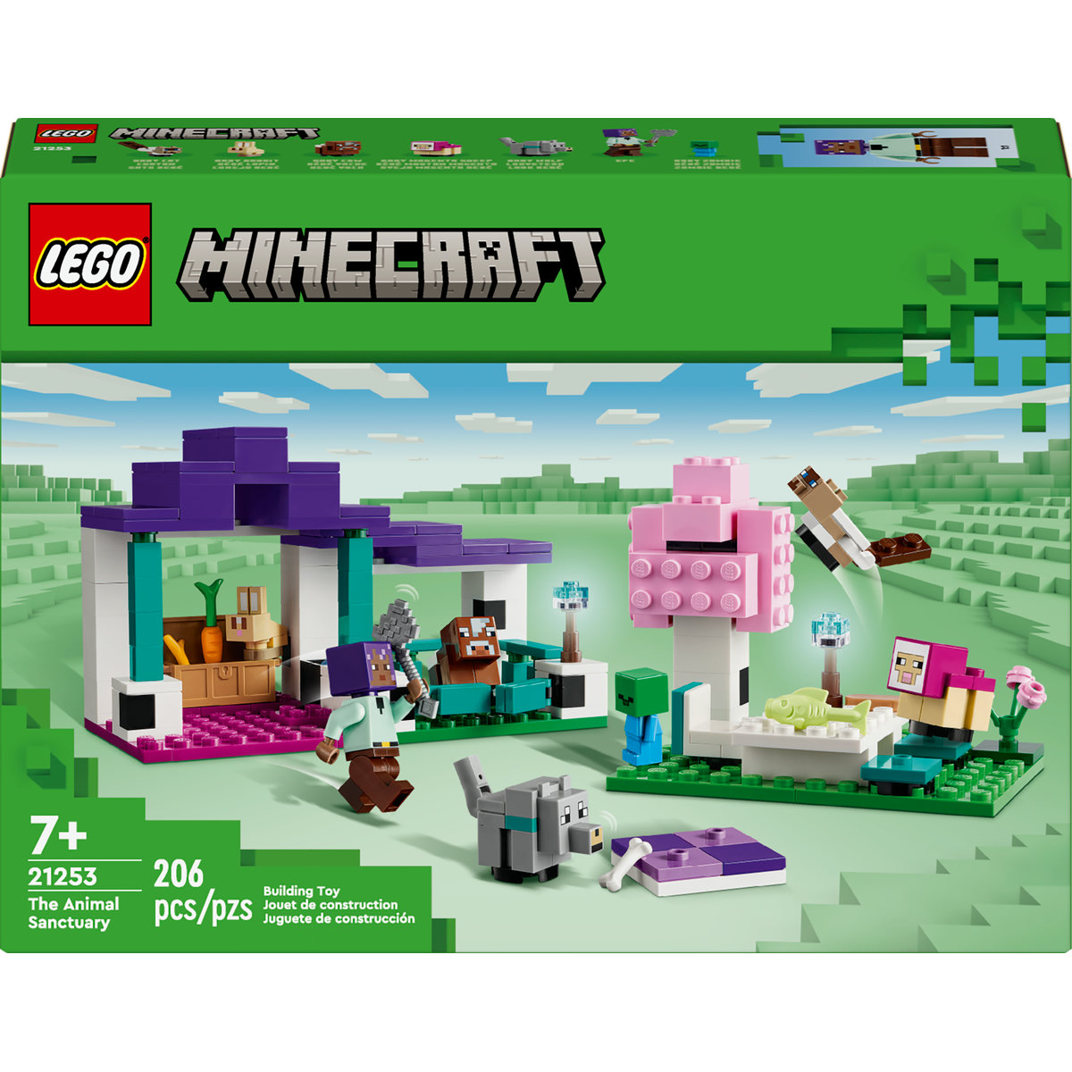 Cuida a adorables animales del bioma Llanura con el set Lego Minecraft El Santuario de Animales 21253, perfecto para niños a partir de 7 años. Construye un santuario con tres zonas: un espacio vallado para los animales, un área de picnic con mesa bajo un árbol y una alfombra para que descansen. Incluye 6 animales Minecraft, un cuidador llamado Efe y un zombi bebé para enriquecer el juego imaginativo. Este set fomenta el cuidado de los animales y se conecta con otros sets Lego Minecraft para más aventuras.