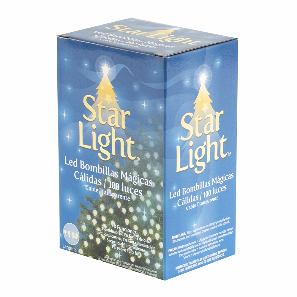 Transforma tu hogar dándole un toque de calidez con la Serie Led de Star Light, que tiene un lindo diseño de Bombillas. Su luz cálida y cable transparente de 8 metros serán ideales para adornar tu sala, dormitorios o paredes. Crea un ambiente acogedor y elegante en cualquier espacio en cuestión de minutos, es fácil de instalar y versátil, perfecta para decorar en esta época navideña.