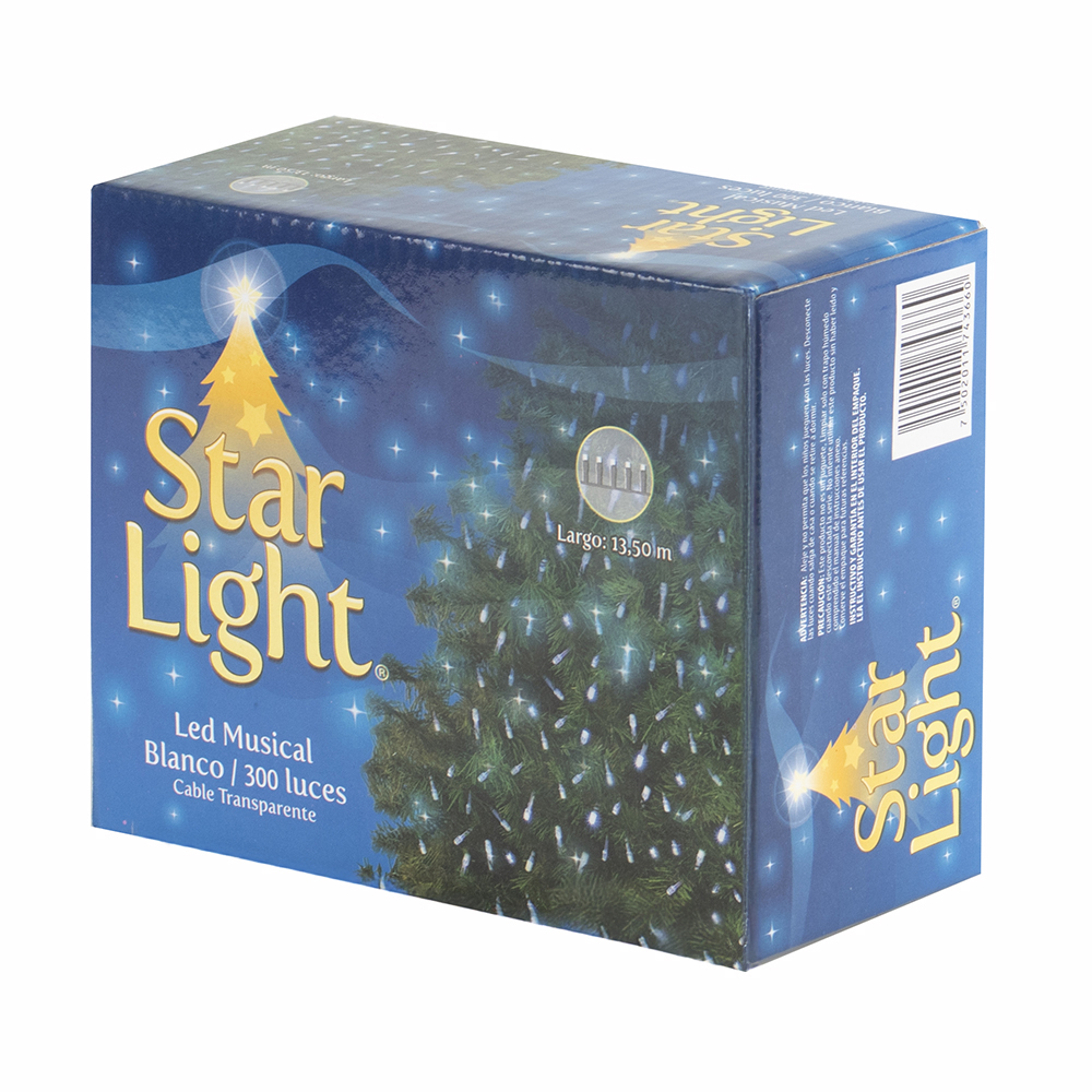 Transforma tu espacio en una experiencia visual y sonora única con la Serie Led Musical de la marca Star Light. Su diseño de luz blanca te ofrece una iluminación brillante y duradera que añade un toque dinámico y divertido a tu decoración. Fabricada con un cable transparente de largo 13.50 m estas luces le dan una magia especial a tu hogar.