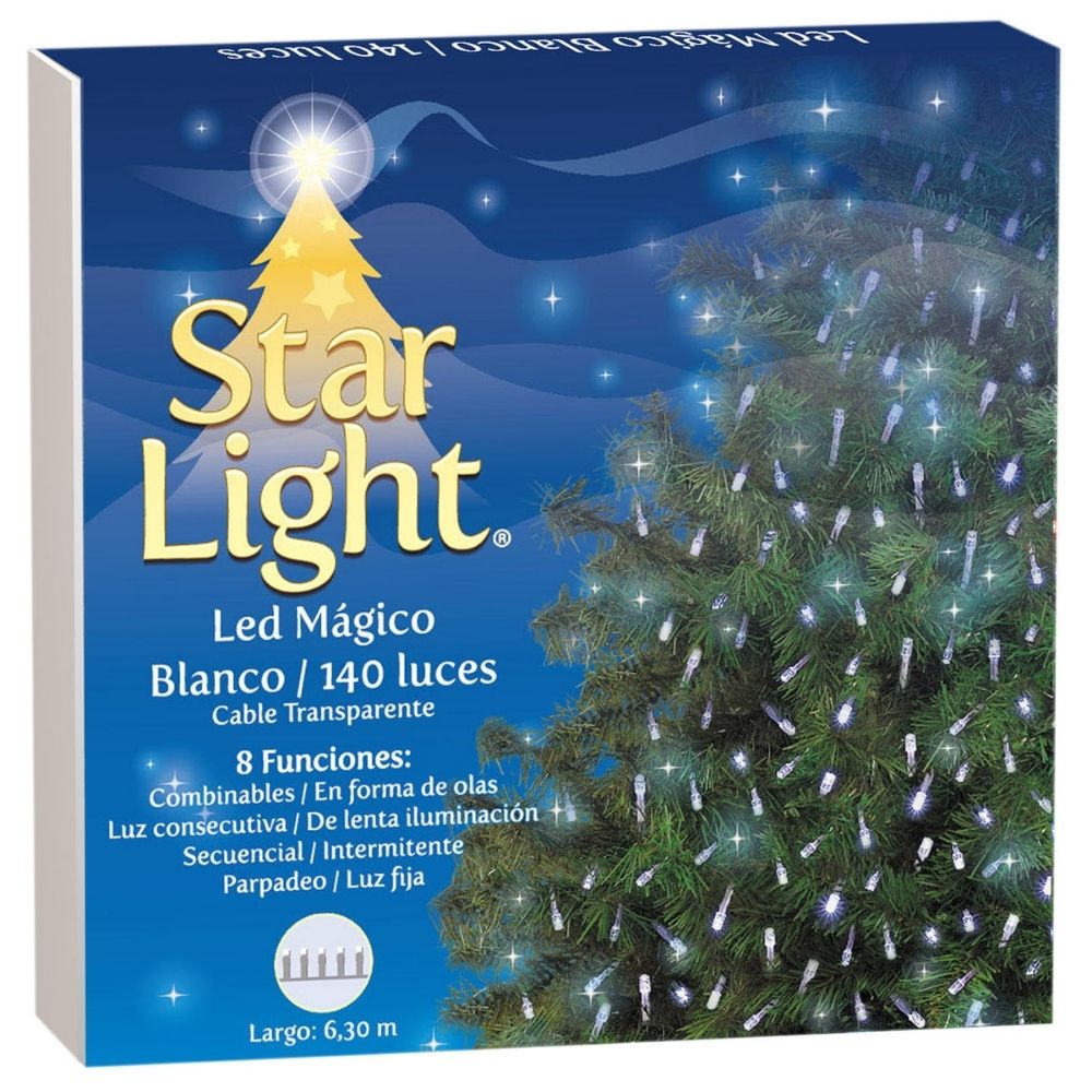 Luce una decoración brillante con la Serie de Luces Led de la marca Star Ligth, es una excelente opción para la iluminación de esta temporada navideña. Su diseño incluye ocho diferentes funciones: combinables, en forma de olas, luz consecutiva, de lenta iluminación, secuencial, intermitente, parpadeo y luz fija. Podrás colocarla en distintos lugares y agregarle un elegante toque de luz blanca a tu sala, terraza, barandales, cortinas, árboles, patios, dormitorio y oficina. Es muy duradera y flexible.