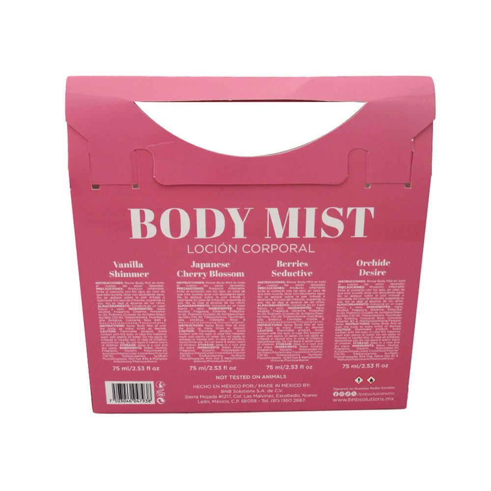 Incluye cuatro body mists con personalidad única y fragancias distintivas.