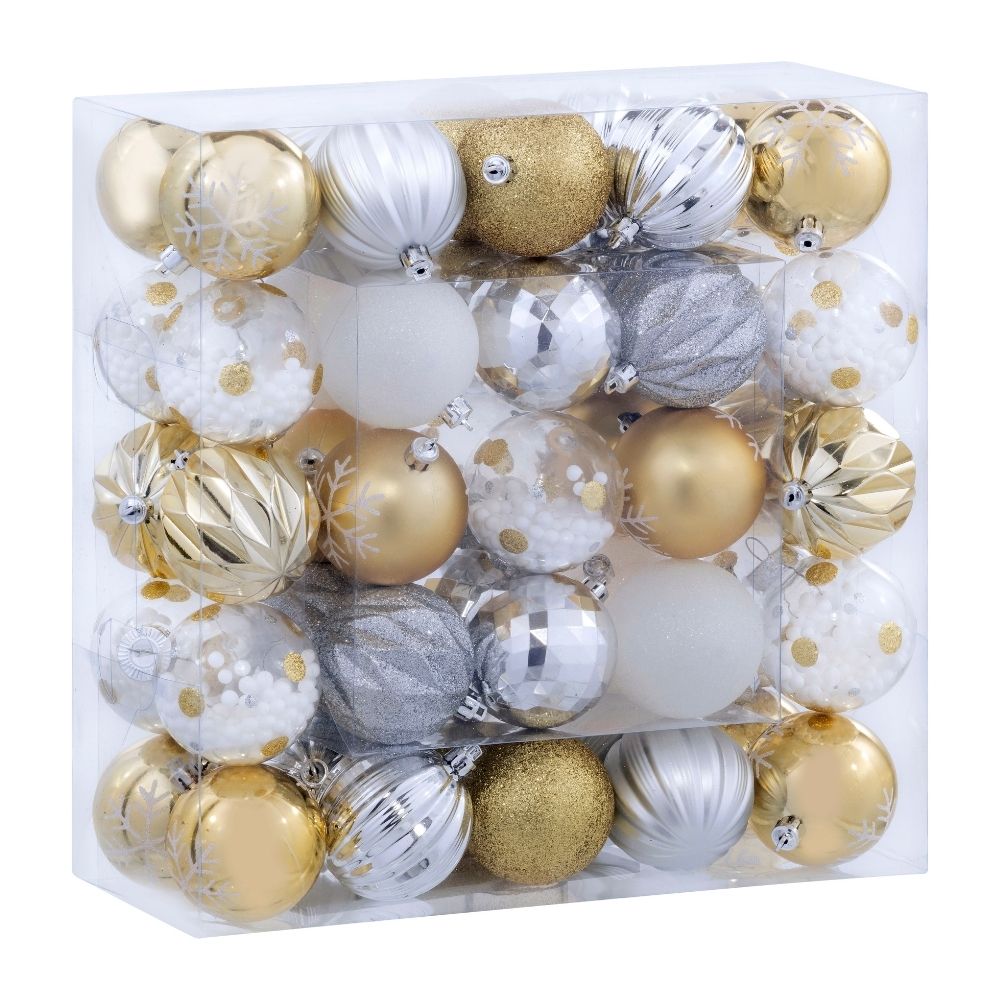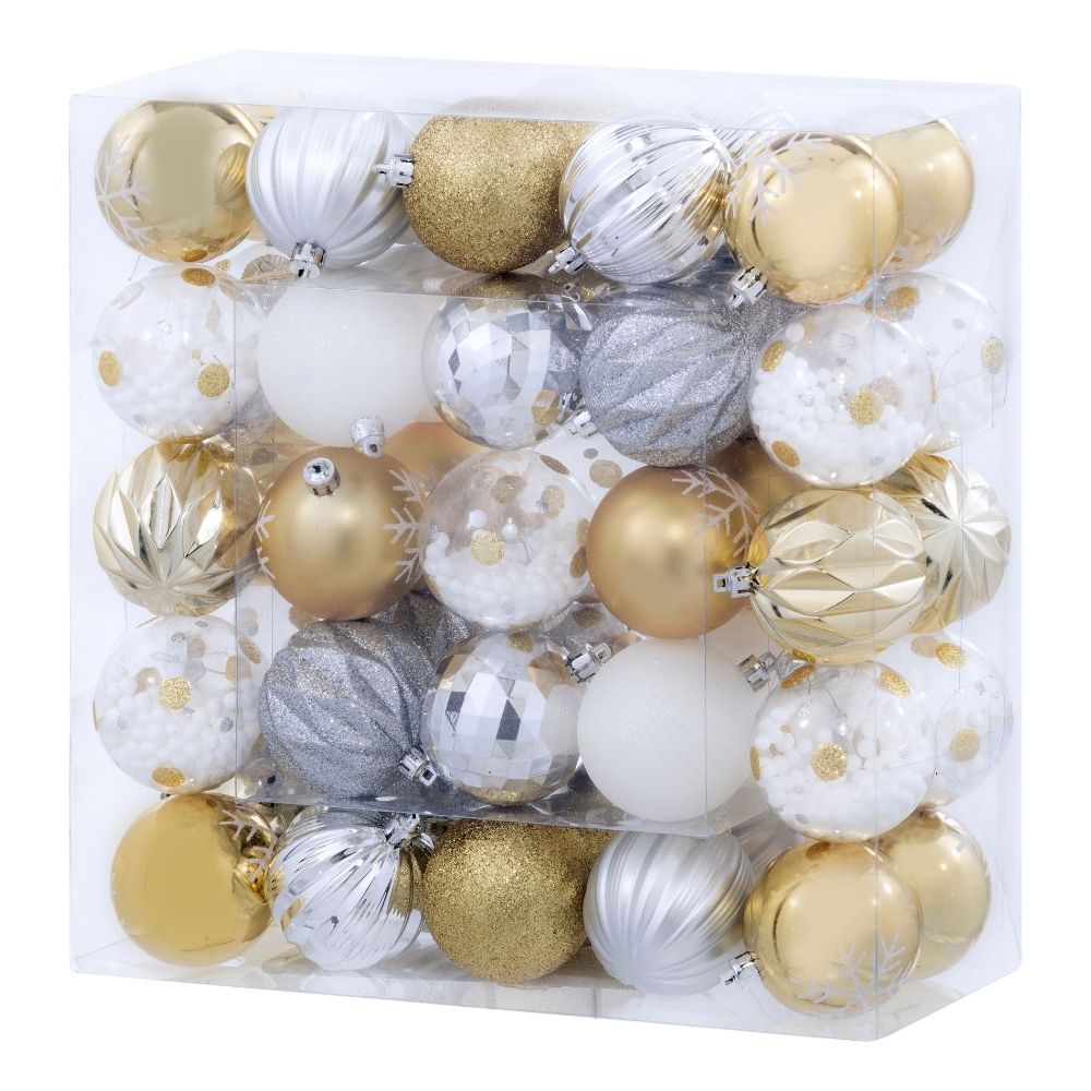 Set de Esferas Christmas Accents Dorado, Plata y Blanco 50 Piezas