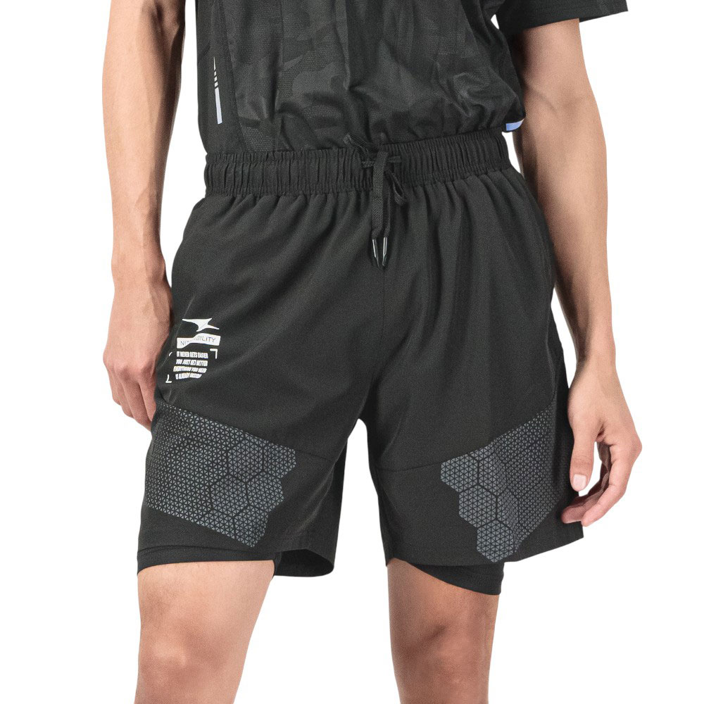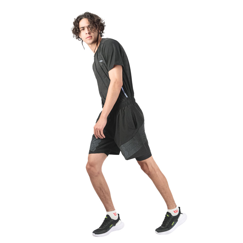 Este short con biker integrado combina comodidad y estilo para acompañarte en cualquier actividad. Su cintura elástica ofrece un ajuste confortable, mientras que el estampado geométrico aporta un toque moderno y dinámico. Cuenta con bolsas funcionales que te permiten llevar lo esencial de forma práctica y segura.