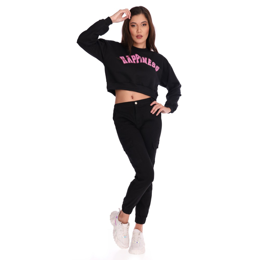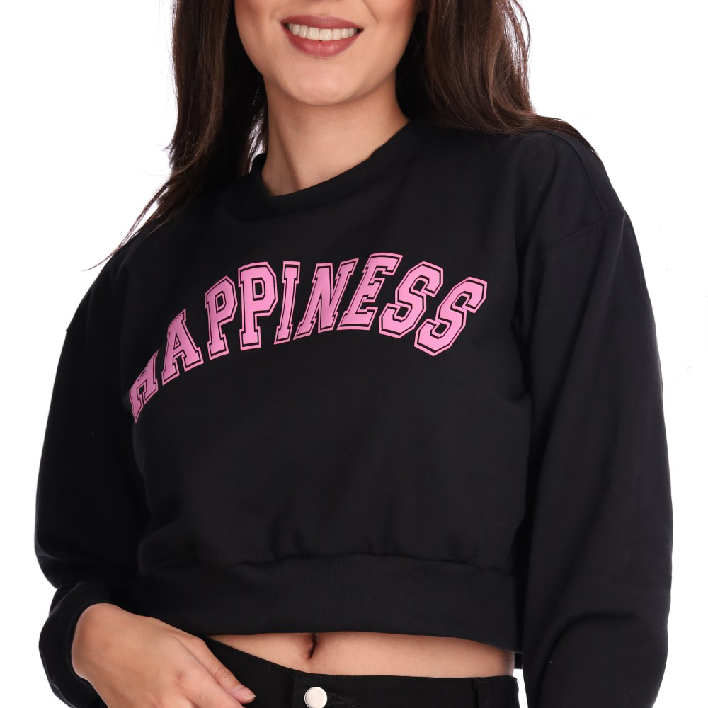 Sudadera Crop Top Mujer Estampado Happiness Mxstaza
