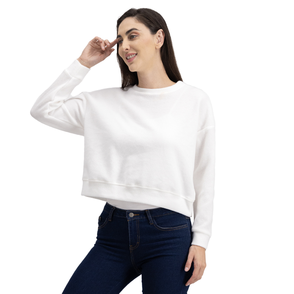 La sudadera manga larga es una prenda versátil y cómoda, ideal para el día a día. Su diseño liso y cuello redondo permiten combinaciones fáciles, mientras que los puños y ruedo con ajuste garantizan un calce cómodo y un estilo cuidado.