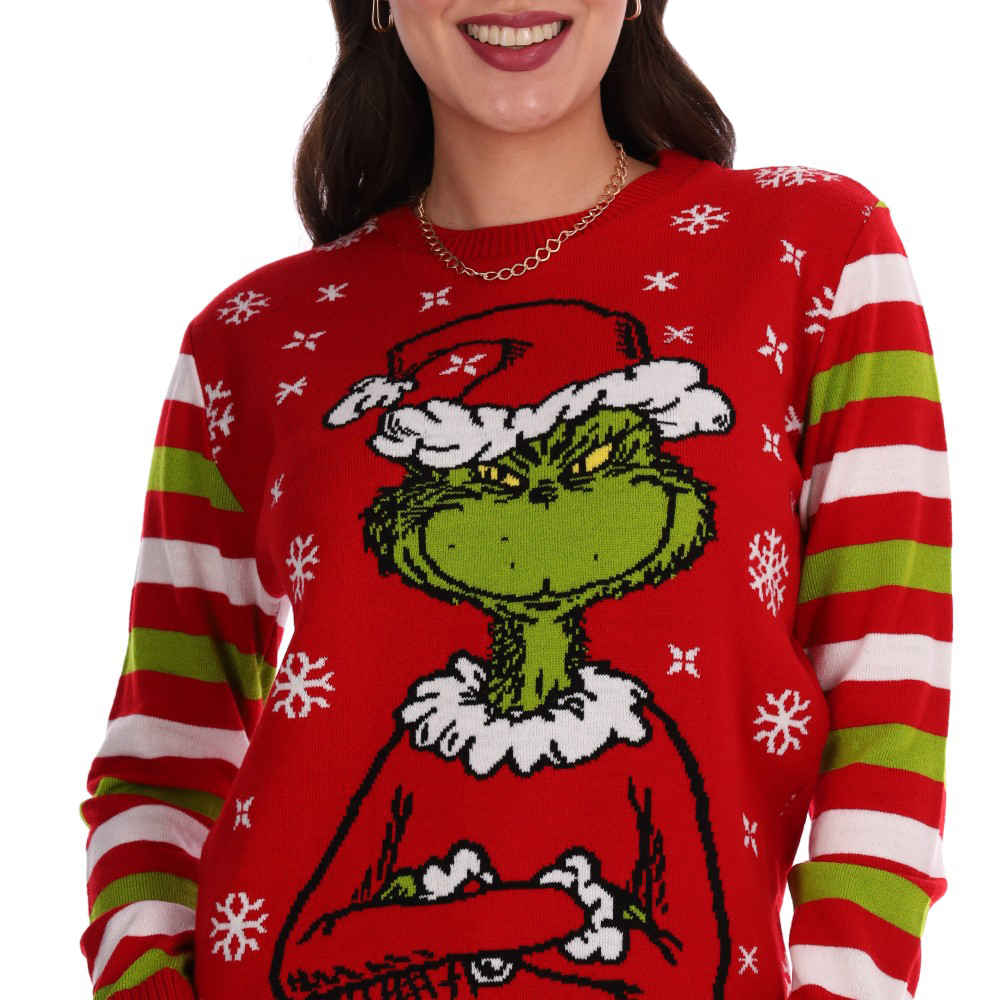Suéter Grinch Mujer Mangas Con Diseño De Líneas