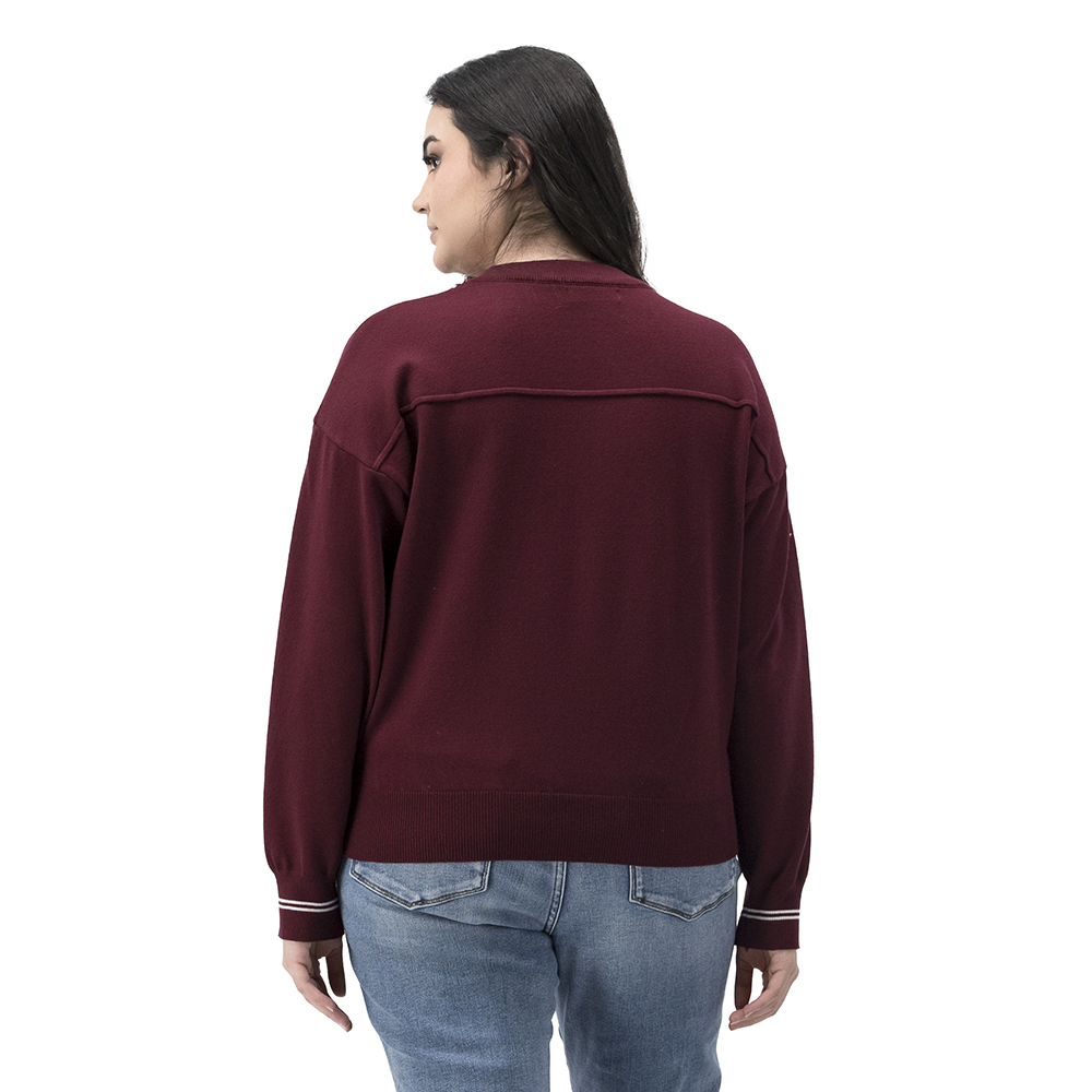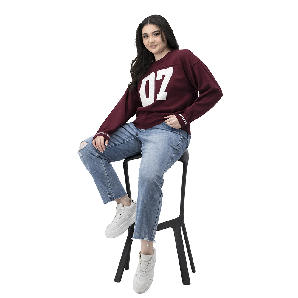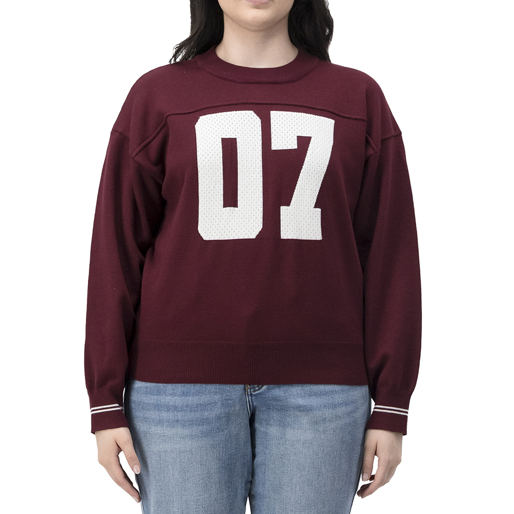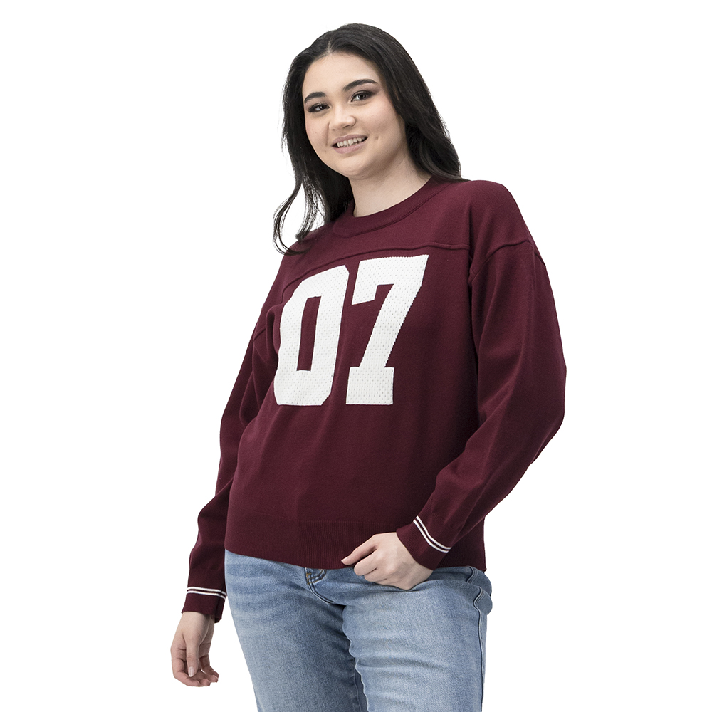 Dale un toque deportivo y moderno a tu look con este suéter con número frontal. Su cuello en V y el diseño único lo hacen perfecto para un estilo relajado y chic en cualquier temporada.