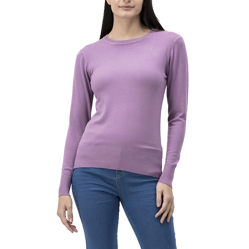 Consigue una prenda esencial y cómoda con nuestro suéter cuello redondo básico para mujer. Incluye un cómodo cuello redondo, manga larga y un diseño liso básico. ¡El suéter mujer básico perfecto para un look versátil!