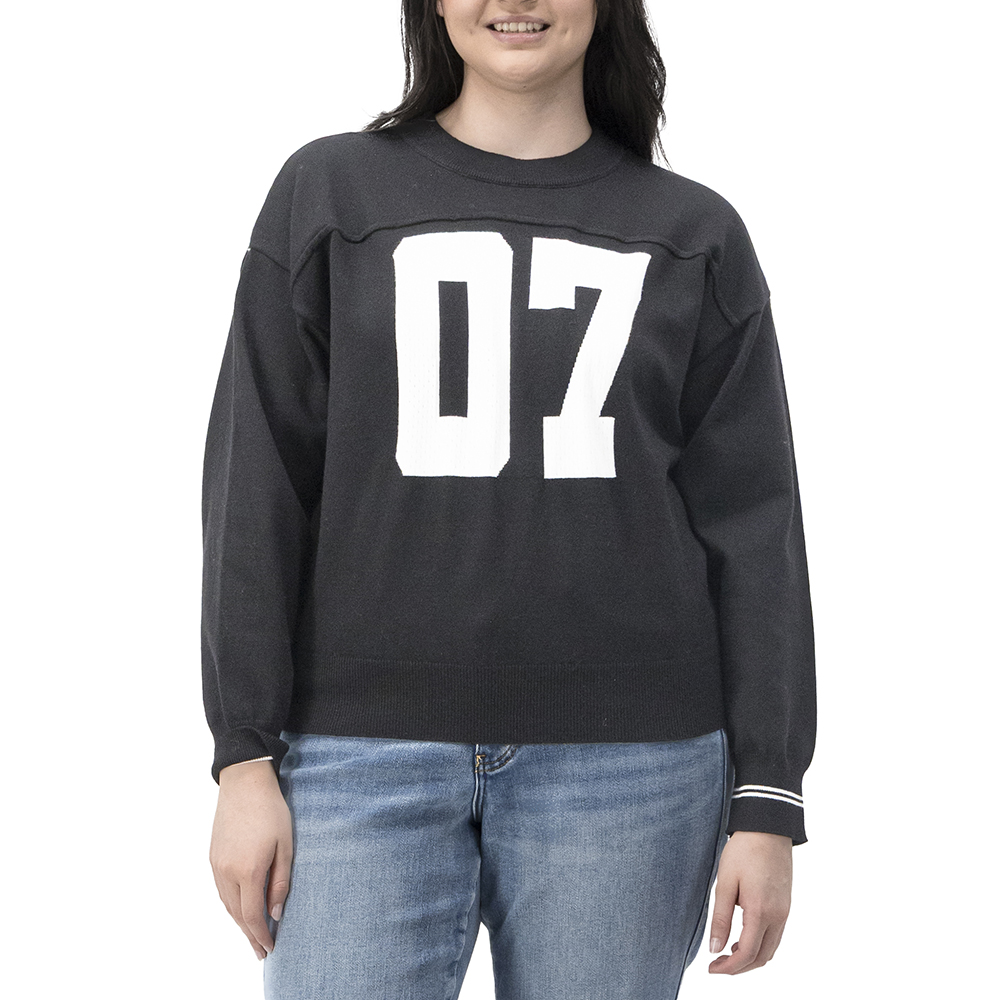 Dale un toque deportivo y moderno a tu look con este suéter con número frontal. Su cuello en V y el diseño único lo hacen perfecto para un estilo relajado y chic en cualquier temporada.