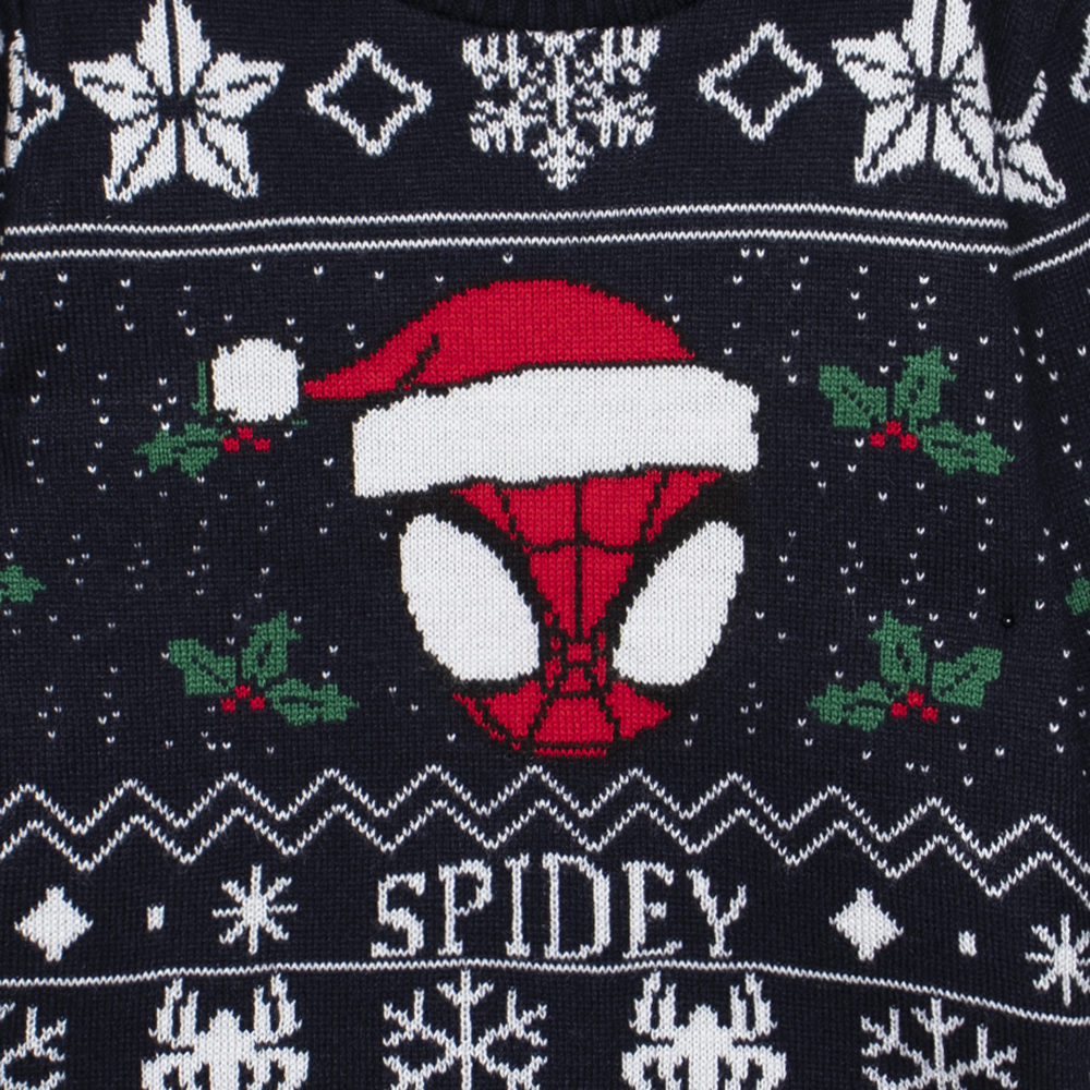 ¡Viste a tu pequeño superhéroe con nuestro suéter navideño de Spidey! Suave, cálido y con el diseño de su personaje favorito, este suéter es perfecto para las fiestas. El cuello redondo, las mangas largas y el ajuste en los puños lo mantienen cómodo y abrigado.