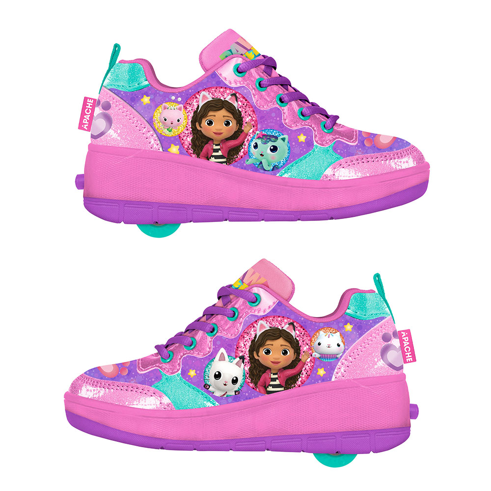 Tu pequeña pasará momentos divertidos con los Tenis Patín de la marca Apache. Su linda versión de Gabby Dollhouse le permitirá jugar, correr o caminar cuando ella más lo desee. Gracias a sus ruedas retráctiles que se pueden sacar u ocultar fácilmente con un solo botón, olvídate de sufrir por los repentinos cambios de calzado a la hora de jugar. Ahora, al utilizarlos de manera casual, las horas de diversión no acabarán.