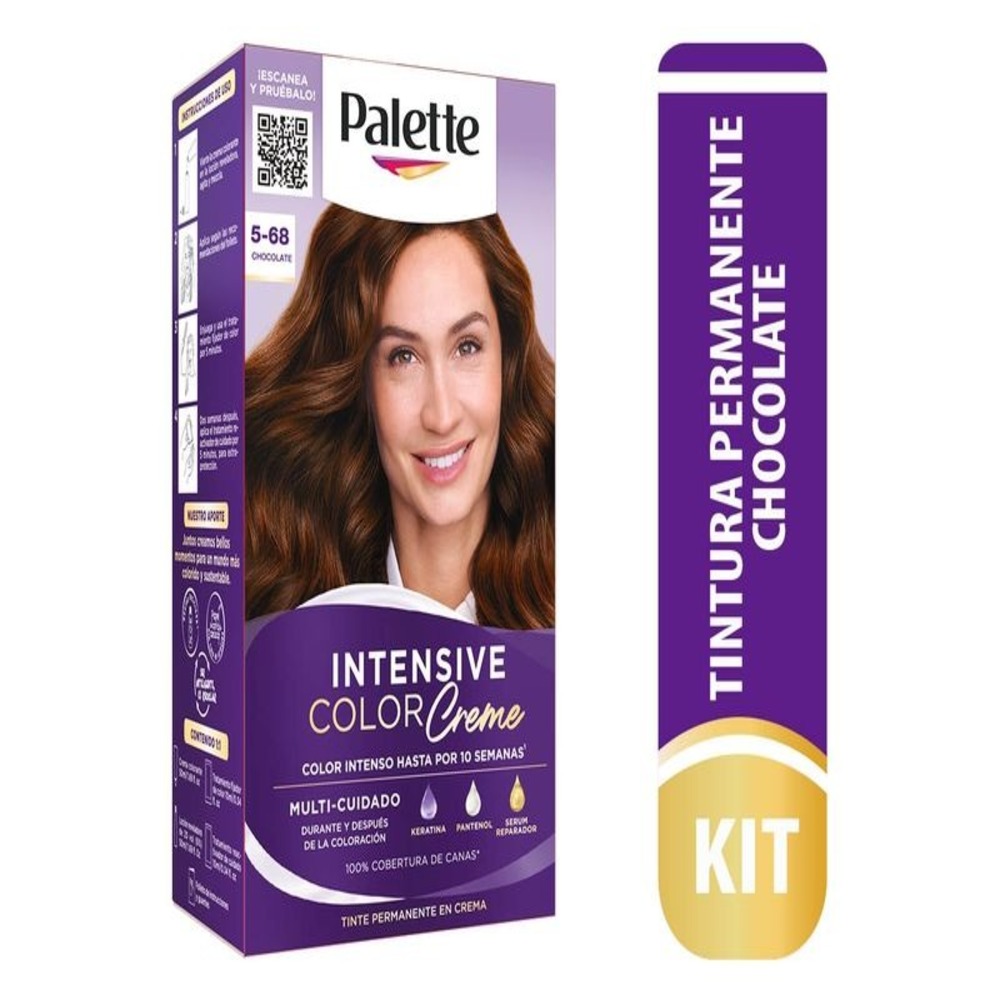 Descubre la tecnología Intensive Color Creme del tinte para cabello en tono chocolate 5-68 de Palette. Su exclusiva fórmula, 3 veces más cuidado, contiene keratina, pantenol y sérum reparador. Además, te brinda un cuidado profundo en tu cabello, reparándolo y suavizándolo desde el interior.