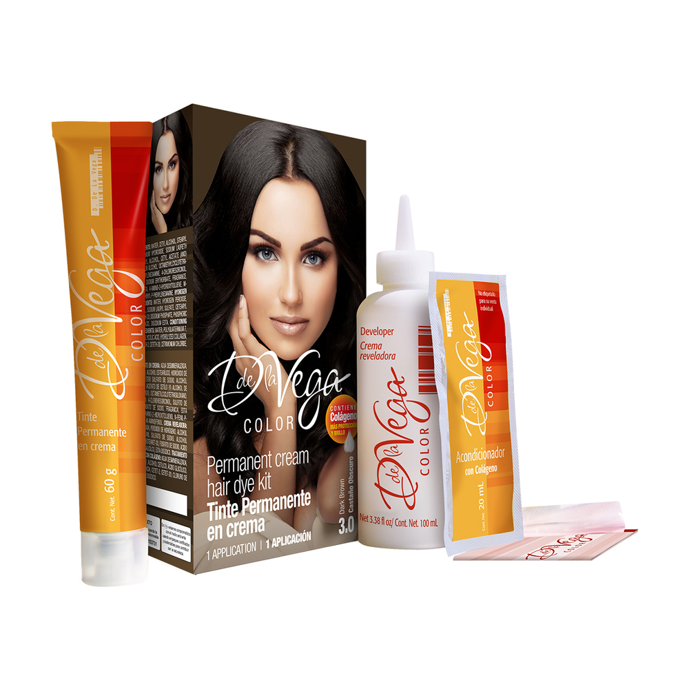 • Tinte Permanente En Crema D de La Vega 3.0 Castaño Oscuro