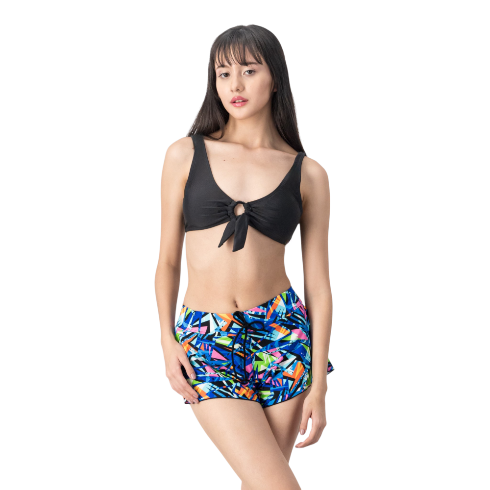 Luce estilo y comodidad con el traje de baño aro frontal, diseñado para brindar libertad de movimiento y un look moderno en la playa o la piscina. Sus detalles de aro decorativo y estampado full print aportan un toque divertido y sofisticado a tu outfit veraniego.