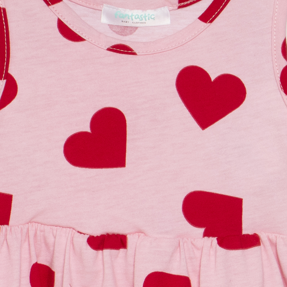 ¡No hay nada más bonito que un vestido lleno de corazones! Este vestido diseño de corazones es perfecto para resaltar la ternura de tu bebé. Con un diseño simple pero lleno de estilo, es el equilibrio perfecto entre comodidad y elegancia. Su corte y materiales suaves hacen que tu pequeña se sienta fresca y libre mientras se ve adorable.