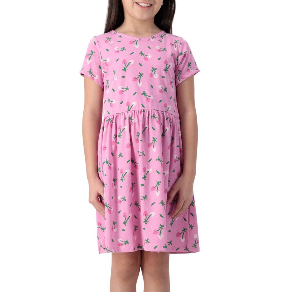 Luce un estilo divertido y tierno con este vestido para niña de manga corta y cuello redondo, perfecto para el día a día. Su full print con diseño de corazones aporta color y alegría, convirtiéndolo en una prenda llamativa y encantadora. Ideal para combinar con sandalias o zapatitos, creando un outfit fresco y lleno de ternura.