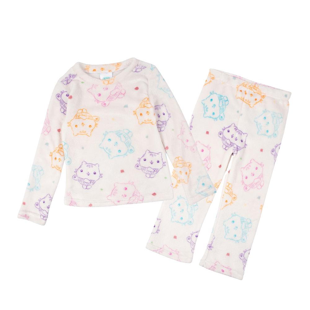 Conjunto de pijama incluye playera de manga larga con cuello redondo y pantalón recto con cintura elástica. Presenta un diseño divertido de gatitos en estampado full print, ideal para comodidad y estilo.