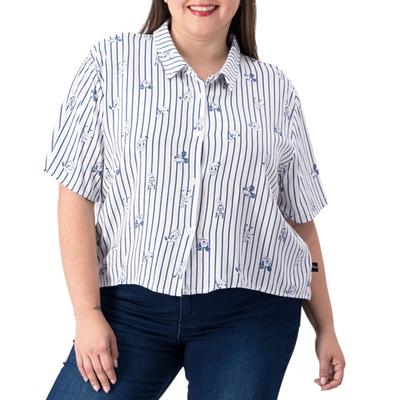 Camisa de manga corta para mujer, con diseño inspirado en Mickey Mouse. Perfecta para un look casual y moderno, combinando estilo y comodidad en una prenda de la familia de blusas.